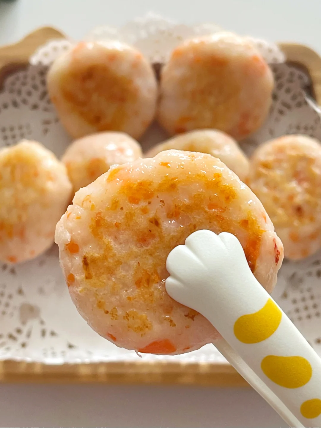 🔹双手沾湿依次把山药虾泥整成饼状,放入锅中,小火两面煎至金黄即可。 (我没有另外加盐,鲜虾的鲜味对于宝宝来说足够)