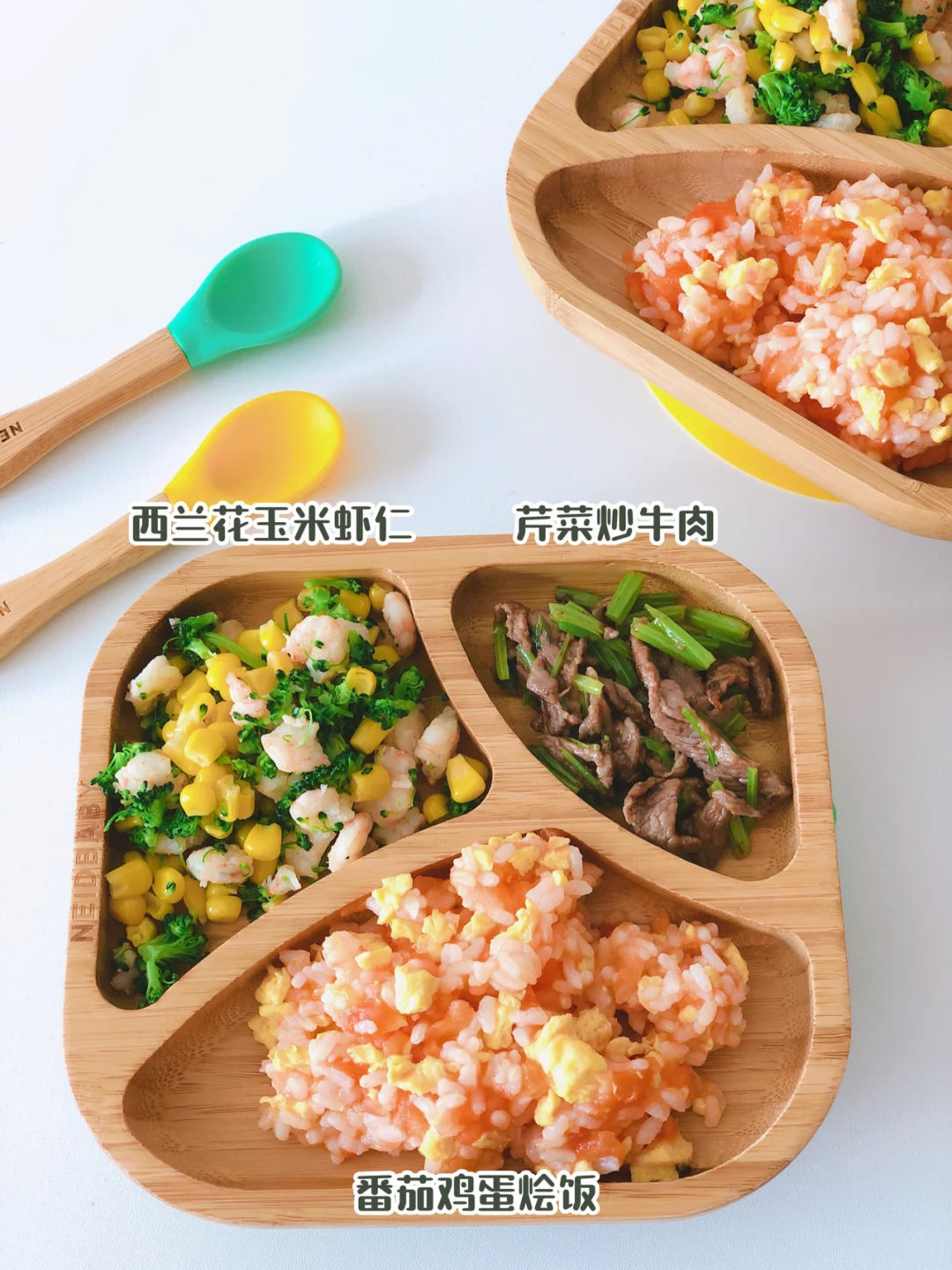 🎀周四:西兰花玉米虾仁/芹菜炒牛肉/番茄鸡蛋烩饭