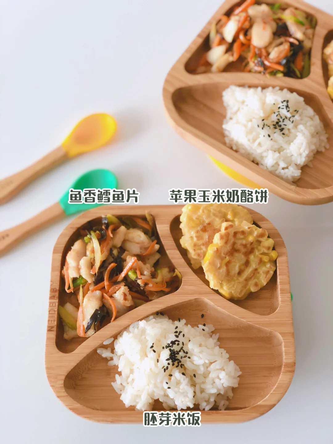 🎀周二:鱼香鳕鱼片/苹果玉米奶酪饼/胚芽米饭