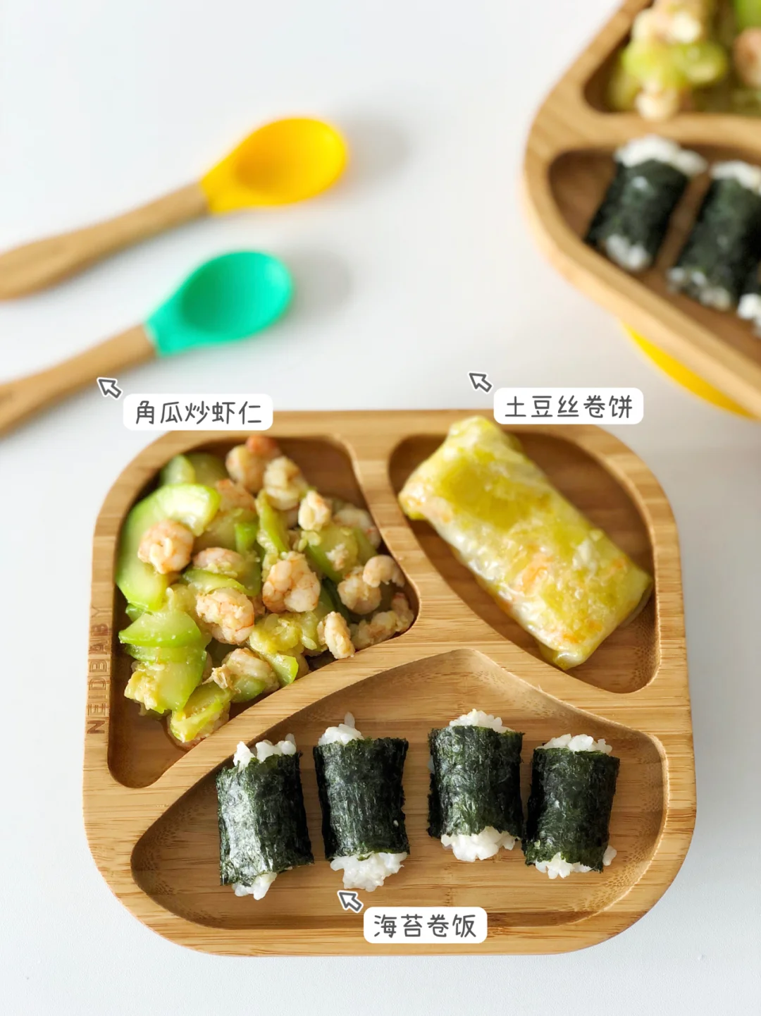 🎀周二:角瓜炒虾仁、土豆丝卷饼、海苔卷饭