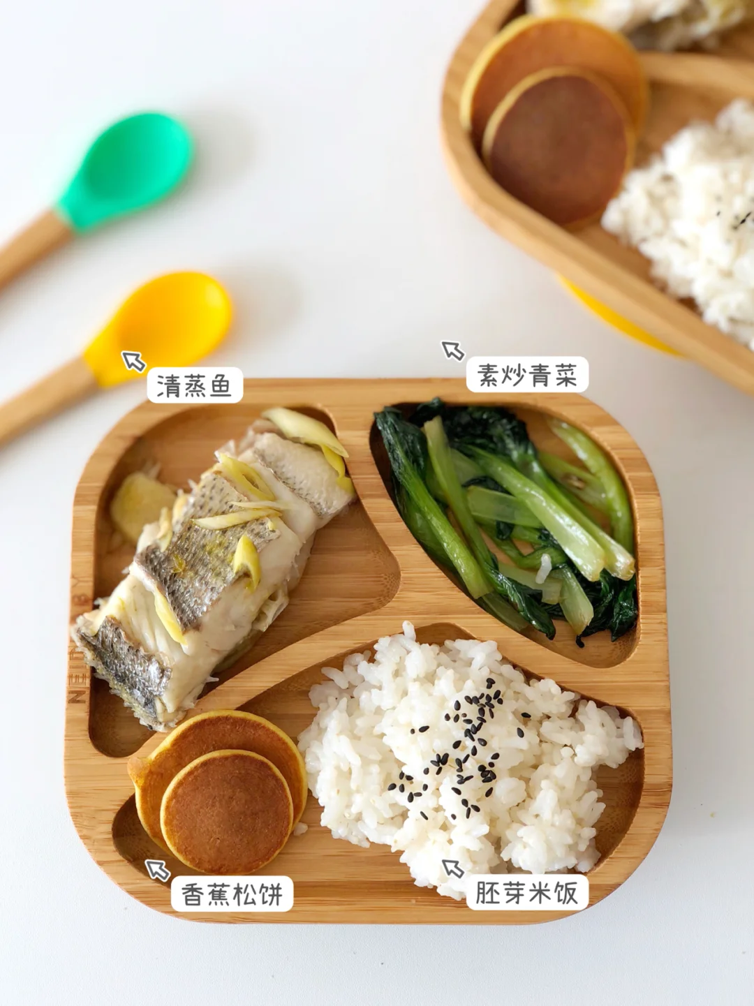 🎀周一:清蒸鱼、素炒青菜、香蕉松饼、胚芽米饭