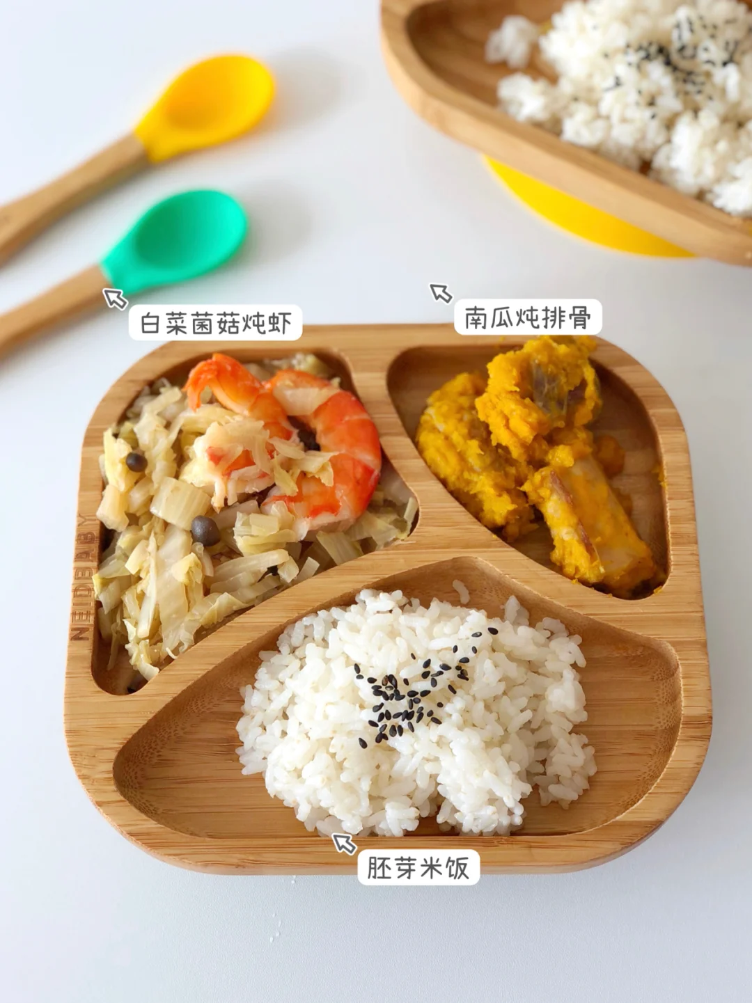 🎀周六:白菜菌菇炖虾、南瓜炖排骨、胚芽米饭