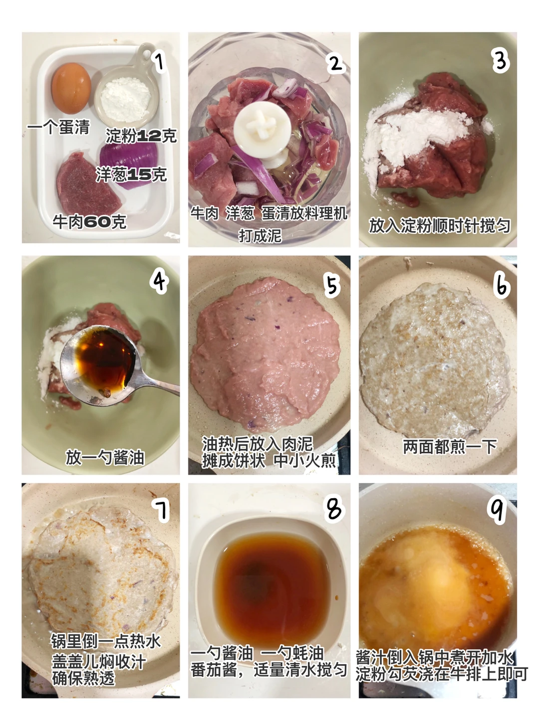 🎀准备材料:牛里脊60克、洋葱15克,一个蛋清、淀粉12克