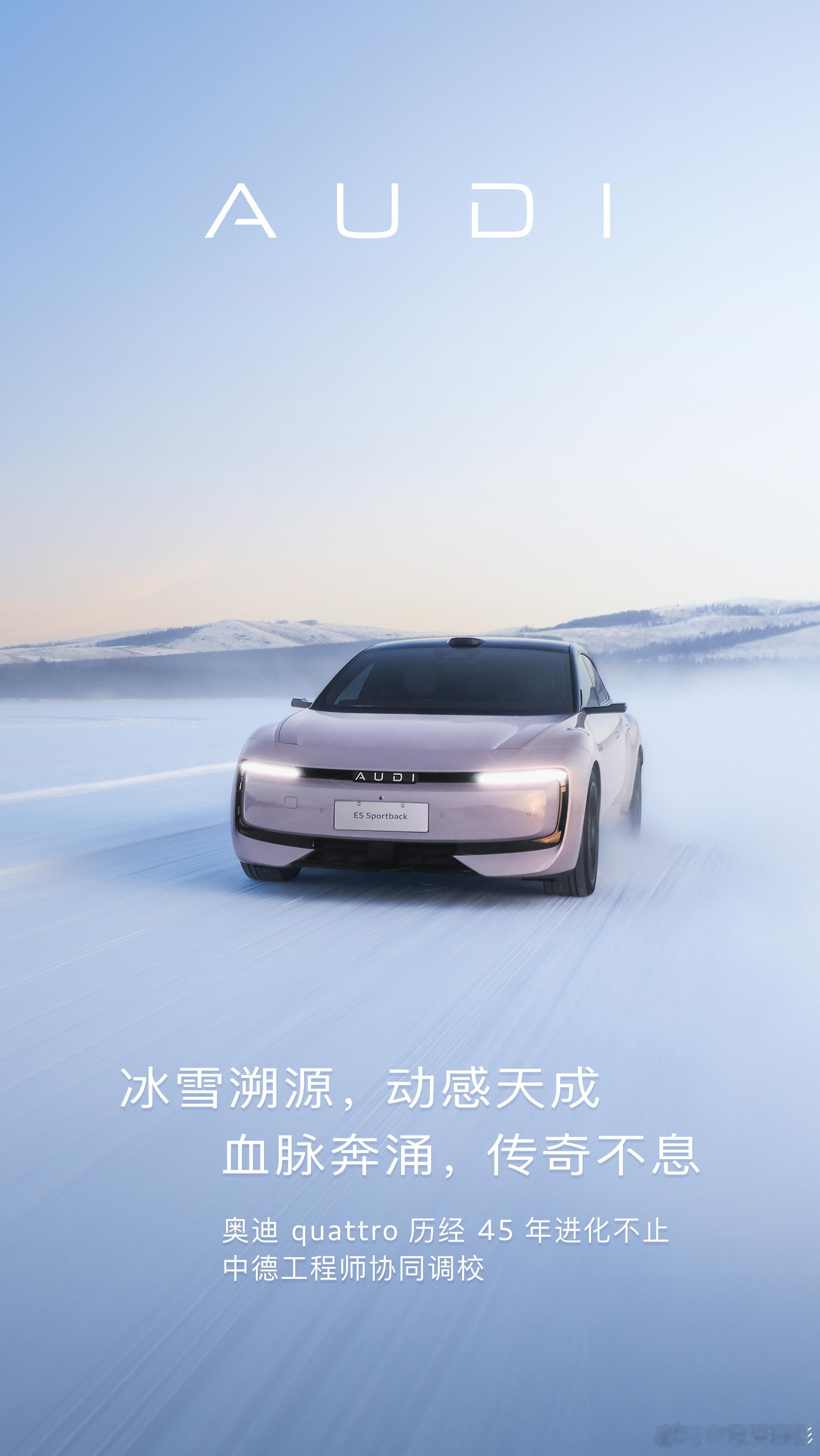 车辆划破雪原,冰面漂移留下优美弧线,来吧!各位!这里是-30℃的牙克石云龙湖,冰面比柏油路滑10倍的终极试炼场!AUDI E5 Sportback即将在这片冰雪上,展现豪华电动轿跑的真正实力!让我们拭目以待!