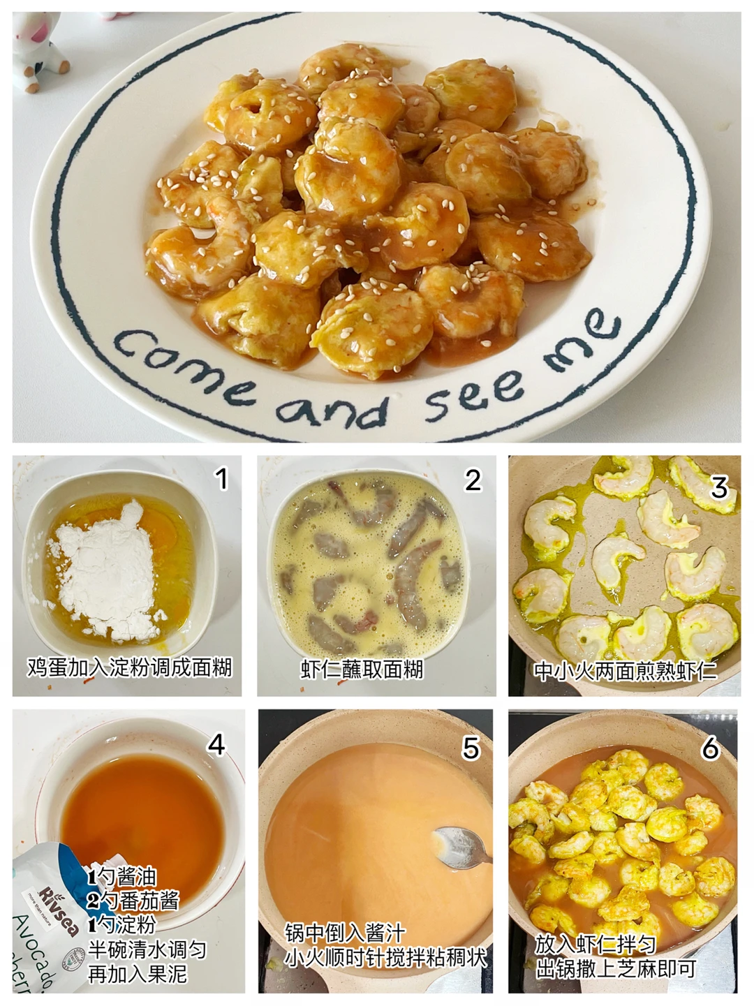 ✅准备材料:虾仁120克、面糊用淀粉20克,一个鸡蛋。 ✅糖醋汁所需食材:2勺番茄酱、适量果泥、一勺淀粉、一勺 酱油、半碗清水。