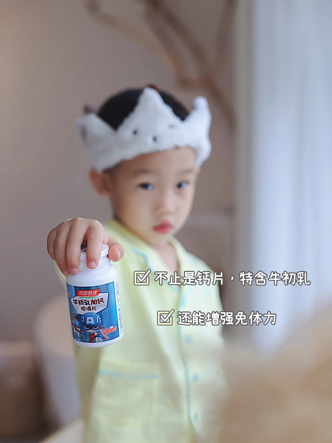 现在吃的是汤臣倍健的牛初乳钙片,这是一款专门为4岁以上小朋友设计的儿童免疫钙片,一天可以吃四片,就能满足额外补钙的需求量!