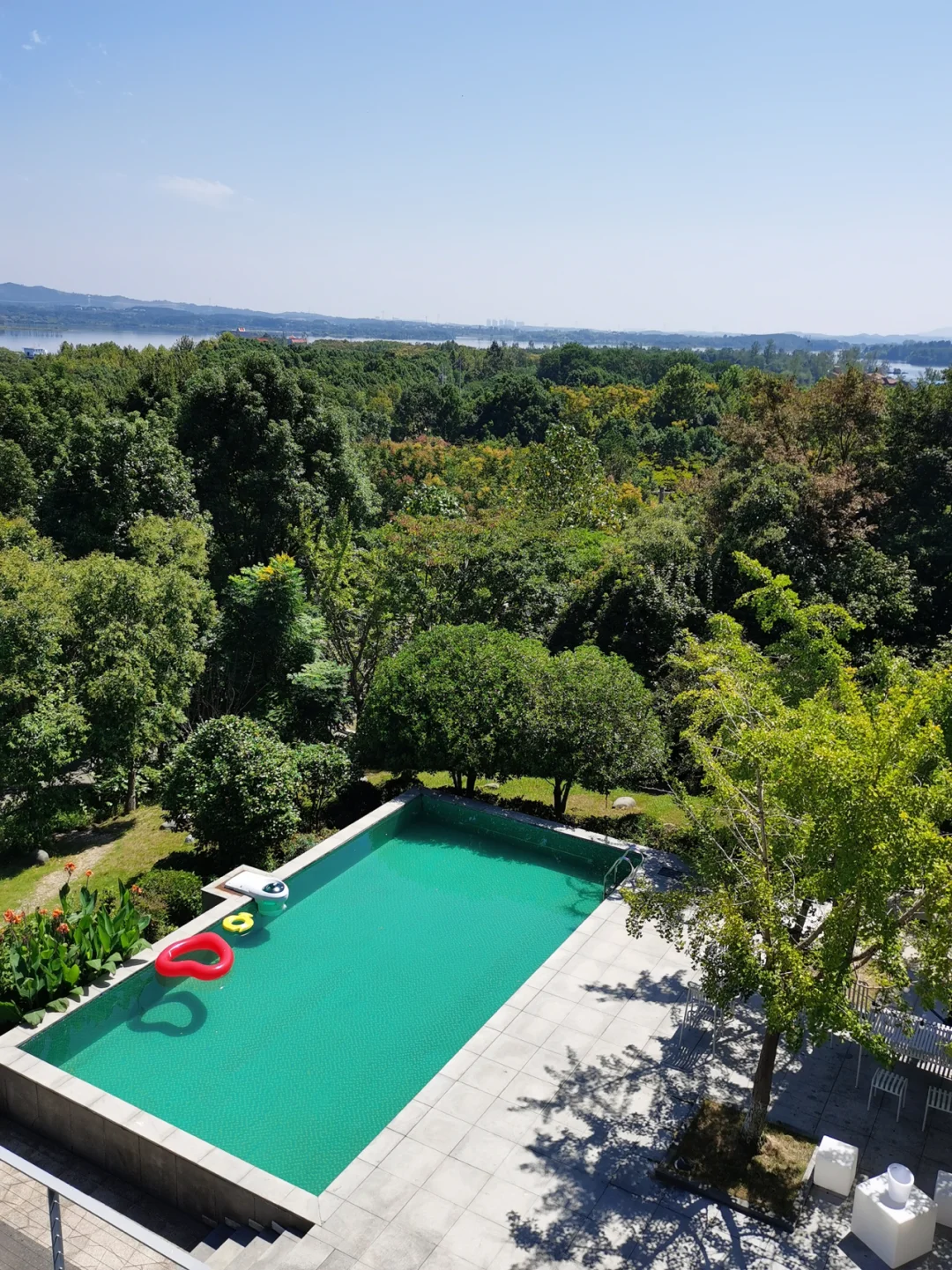 还有户外泳池和顶楼露台,可以看到整个木兰湖,傍晚在这里看看夕阳,真的太解压了🌇