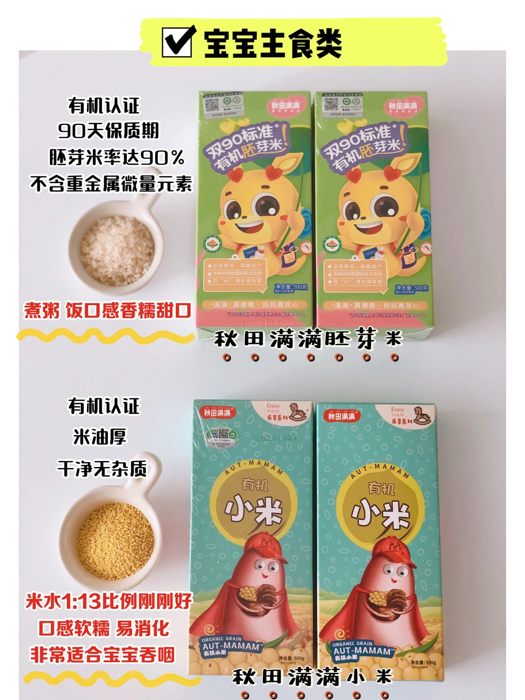 一直在回购的米,给宝宝选胚芽米一定要选有机认证,认准双90标准,90天保质期,胚芽率高达90%,不含污染重金属,煮出来的粥,饭口感十分香甜软糯,宝宝接受度非常高
