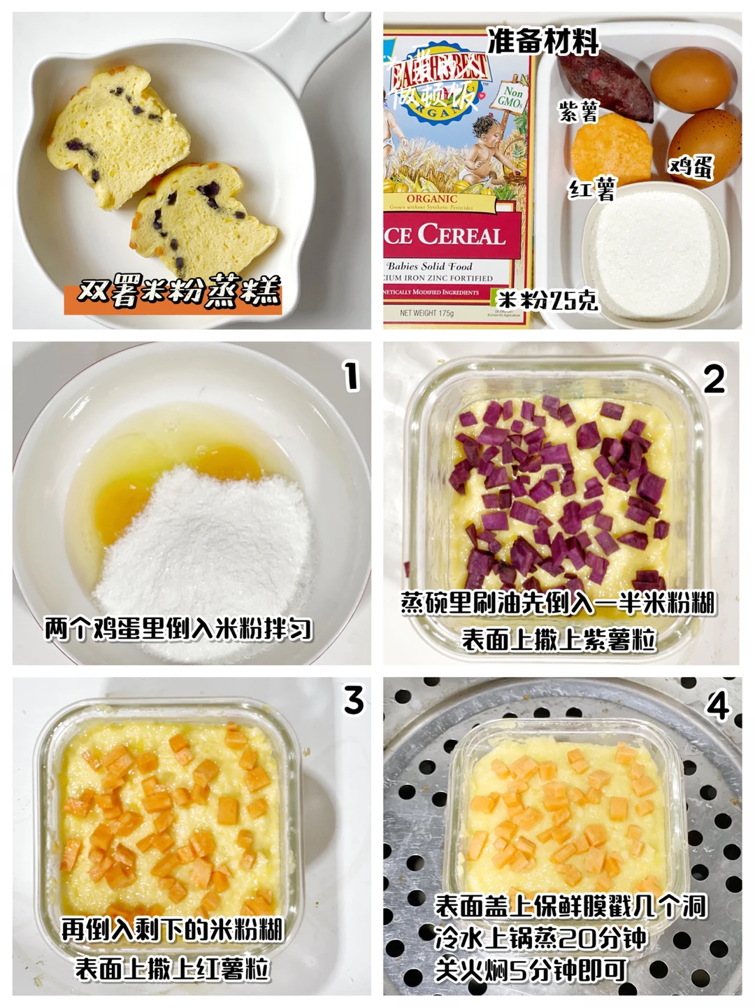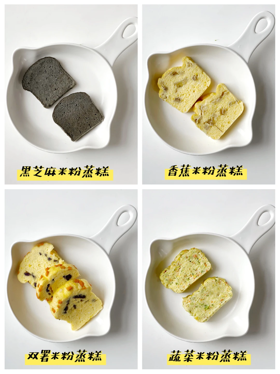 🌸宝宝常吃的米粉除了用水直接冲泡外,还有很多花样做法,今天先分享4款米粉蒸糕,配料简易操作,口感软糯,9月+的宝宝就可以适当添加当手指食物,现在我也偶尔给我家两小只当作早餐来吃[斜眼R]