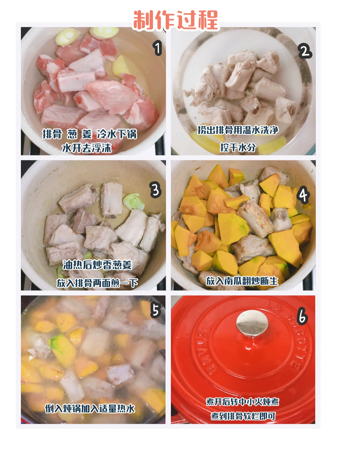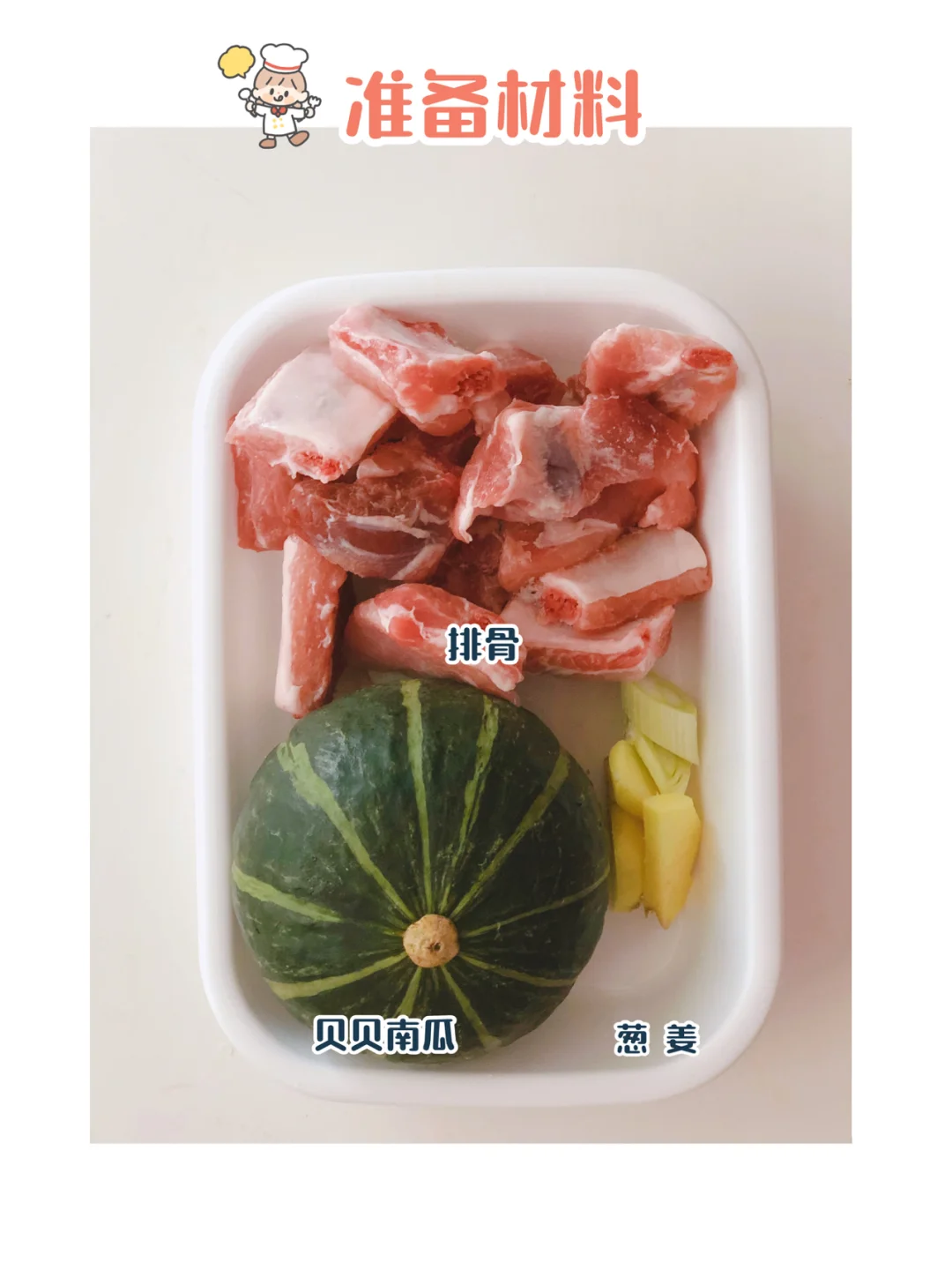 中午安排了南瓜炖排骨,我家两小只每次啃完肉再用小嘴儿嘬干净手指上沾着的南瓜,那个满足的小模样好可爱[偷笑R] 🎀准备材料:南瓜、排骨、葱、姜 ⬇️制作方法:⬇️ 🔹南瓜去皮去瓤切小块. 🔹排骨洗净和葱、姜一起冷水下锅,煮开去浮沫,捞出用温水洗净,控干水备用。 🔹锅中倒入适量宝宝油,油热后放入葱段和姜片炒香后,放入排骨翻炒一下,再放入南瓜翻炒断生。 🔹所有的食材倒入炖锅,倒入适量的热水,煮开后再转中小火炖煮,煮到排骨软烂即可。(约1个小时)