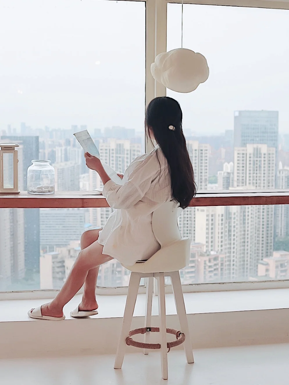 平时中午下午段期间把孩子哄睡着后,我就会一个人在家窗边坐着这一款小兰椅,然后喝喝下午茶吃吃水果,真的很不错呢,日子也有更多的小确幸🌈🌈🌈