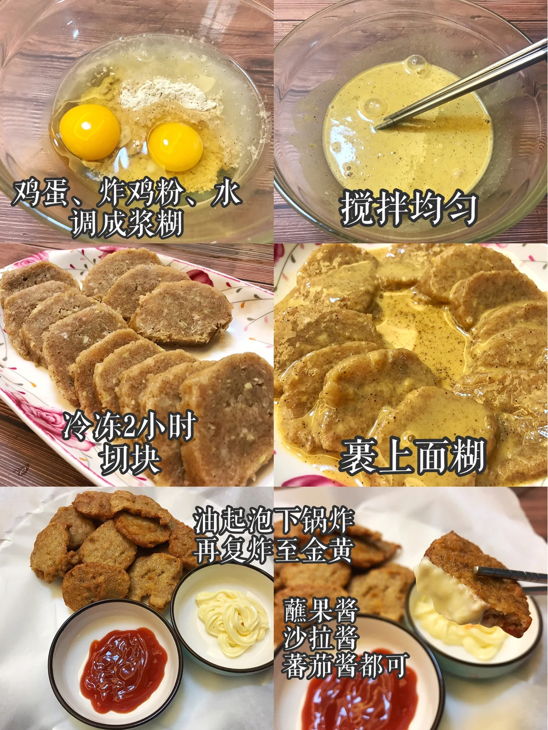 👩🍳食材:鸡胸肉1块,蒜末(4瓣),姜末(3克),黑胡椒粉1勺,玉米淀粉2勺,食盐1茶勺,鸡蛋60克(我用的小的所以要两个)炸鸡粉60克,清水30克。