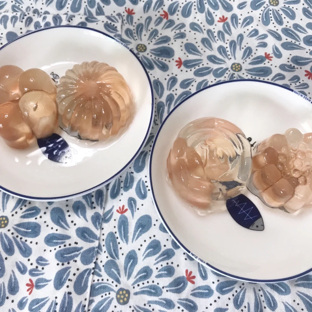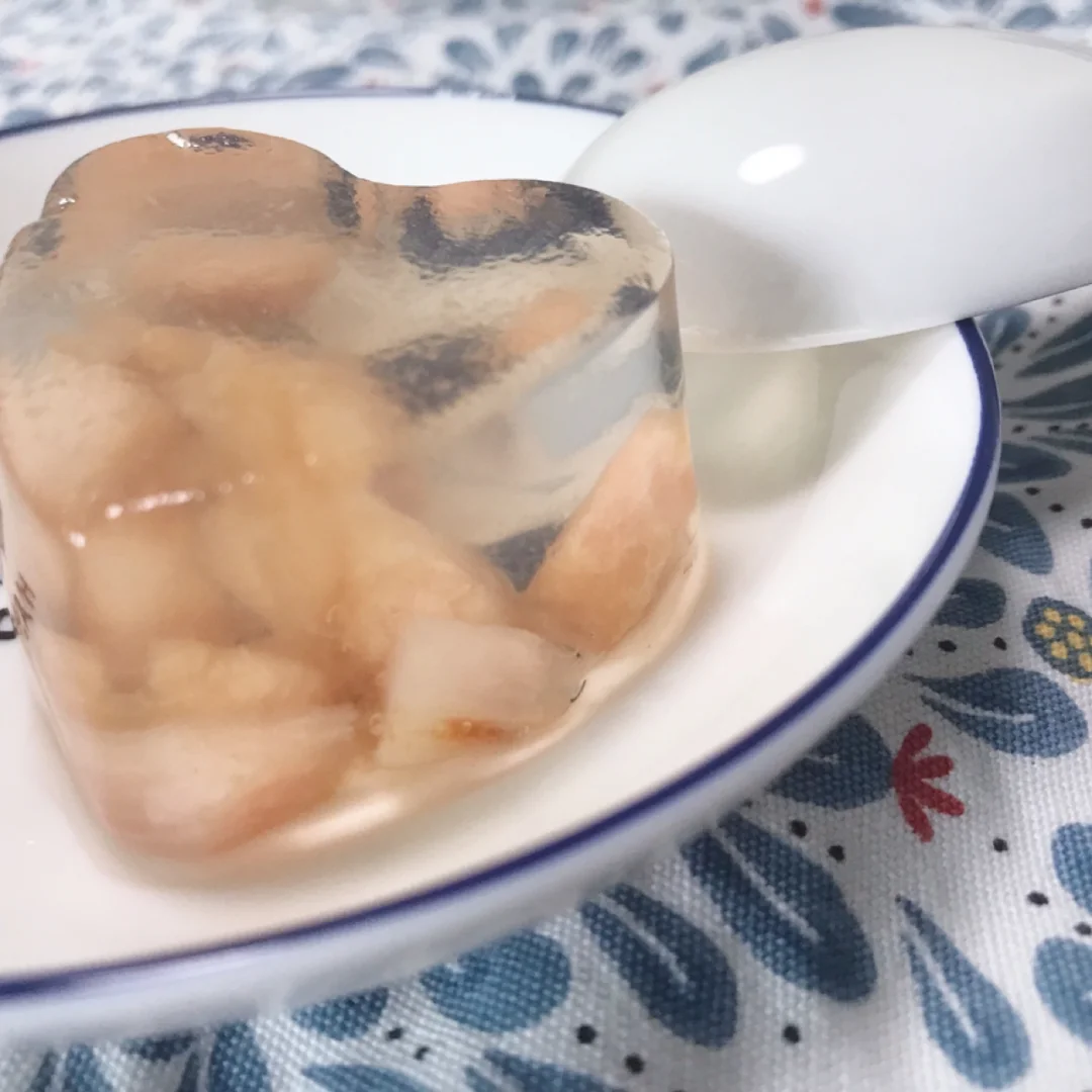 食材:水蜜桃1个、白凉粉30克、清水500克、白砂糖20克 步骤:1、蜜桃🍑切丁 2、蜜桃皮切好不要扔,煮粉粉的蜜桃水(大火煮) 3、再将白凉粉、白砂糖放进去大火煮,大概三分钟后乘出放凉 4、再用勺子装进模具放冰箱冷藏半个钟左右,拿出脱模 快来试试吧,水果可以根据自己喜好来选择🙆