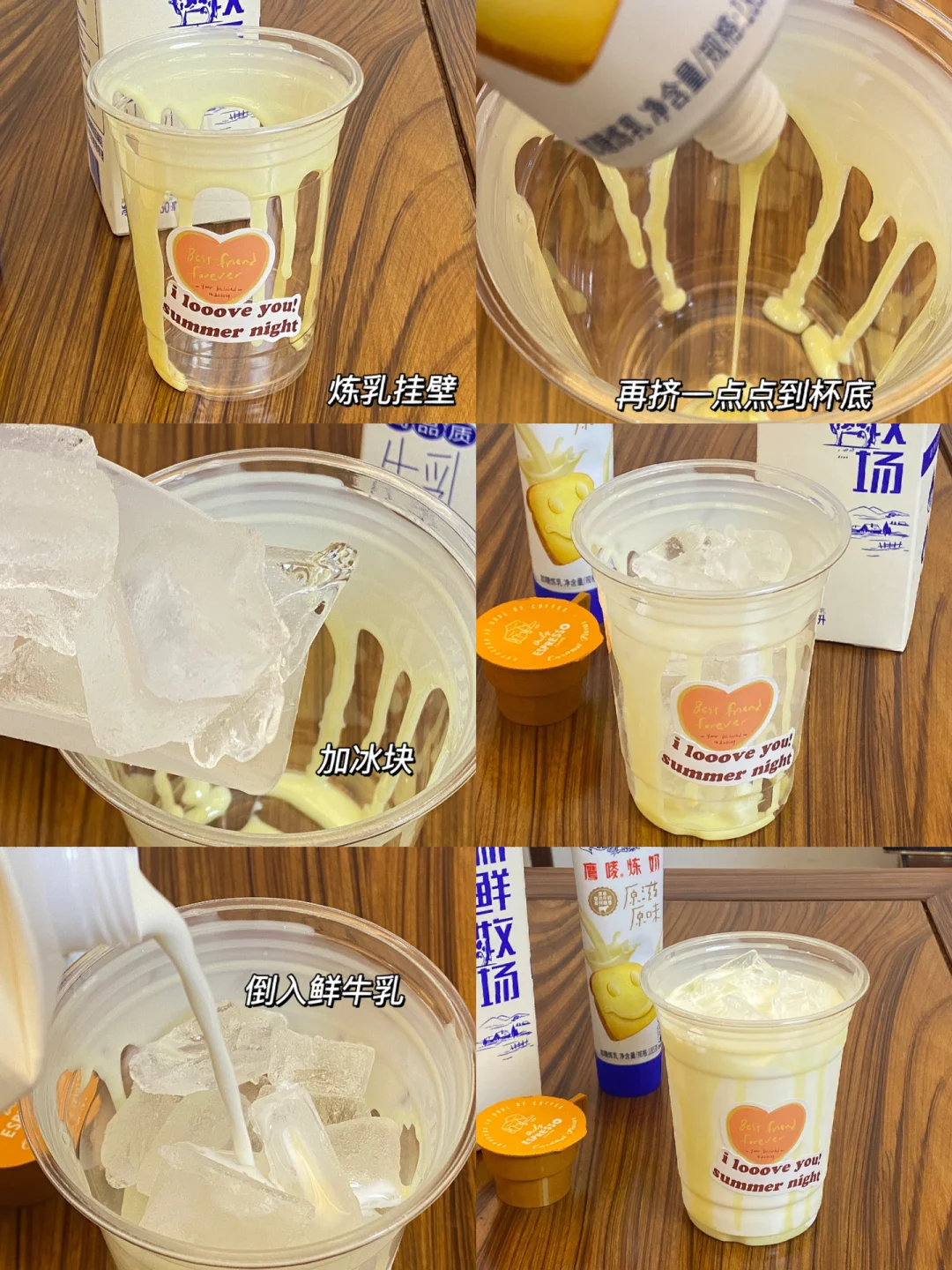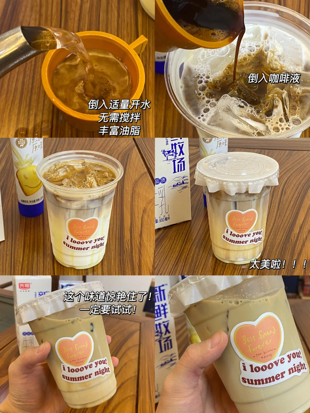 ☕️食材:鲜牛乳,炼乳,咖啡,冰块。 ☕️做法:1.炼乳绕杯子四周挂壁,杯底再挤一点炼乳。 2.加冰块至8分满,倒入鲜牛乳(建议用鲜牛乳,味道会更加醇厚) 3.倒入咖啡液(味道醇厚的咖啡都可以)就能看到美丽的分层啦! ☕️喝前用吸管搅拌搅拌,加了炼乳后味道如此惊艳,简单又好喝,一定要试试呀[赞R][赞R][赞R]