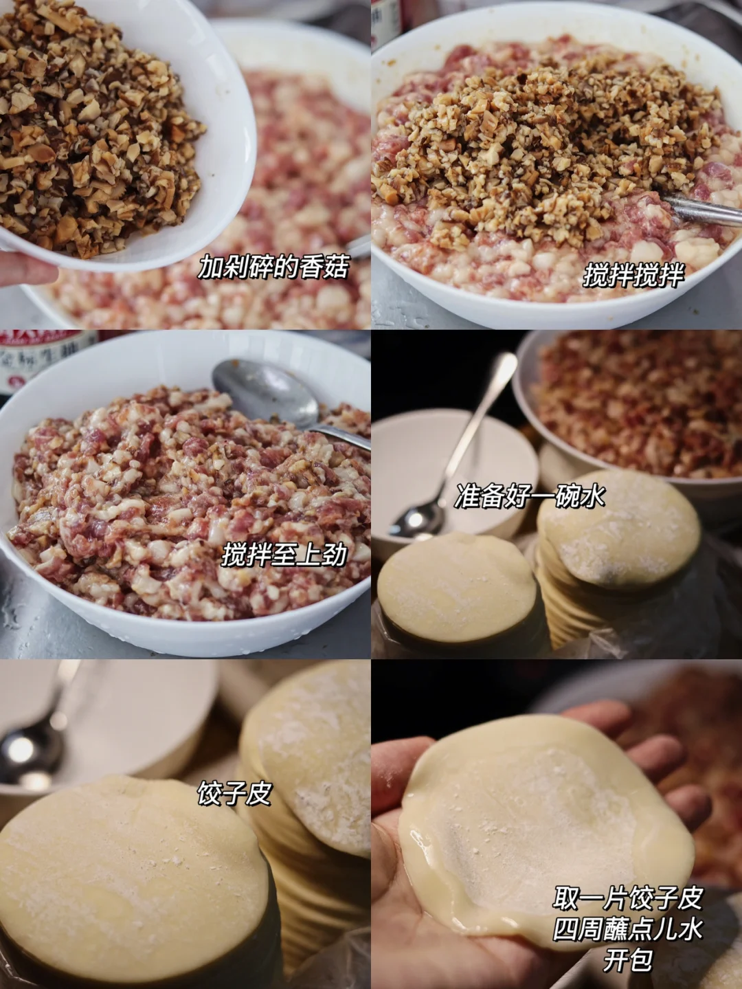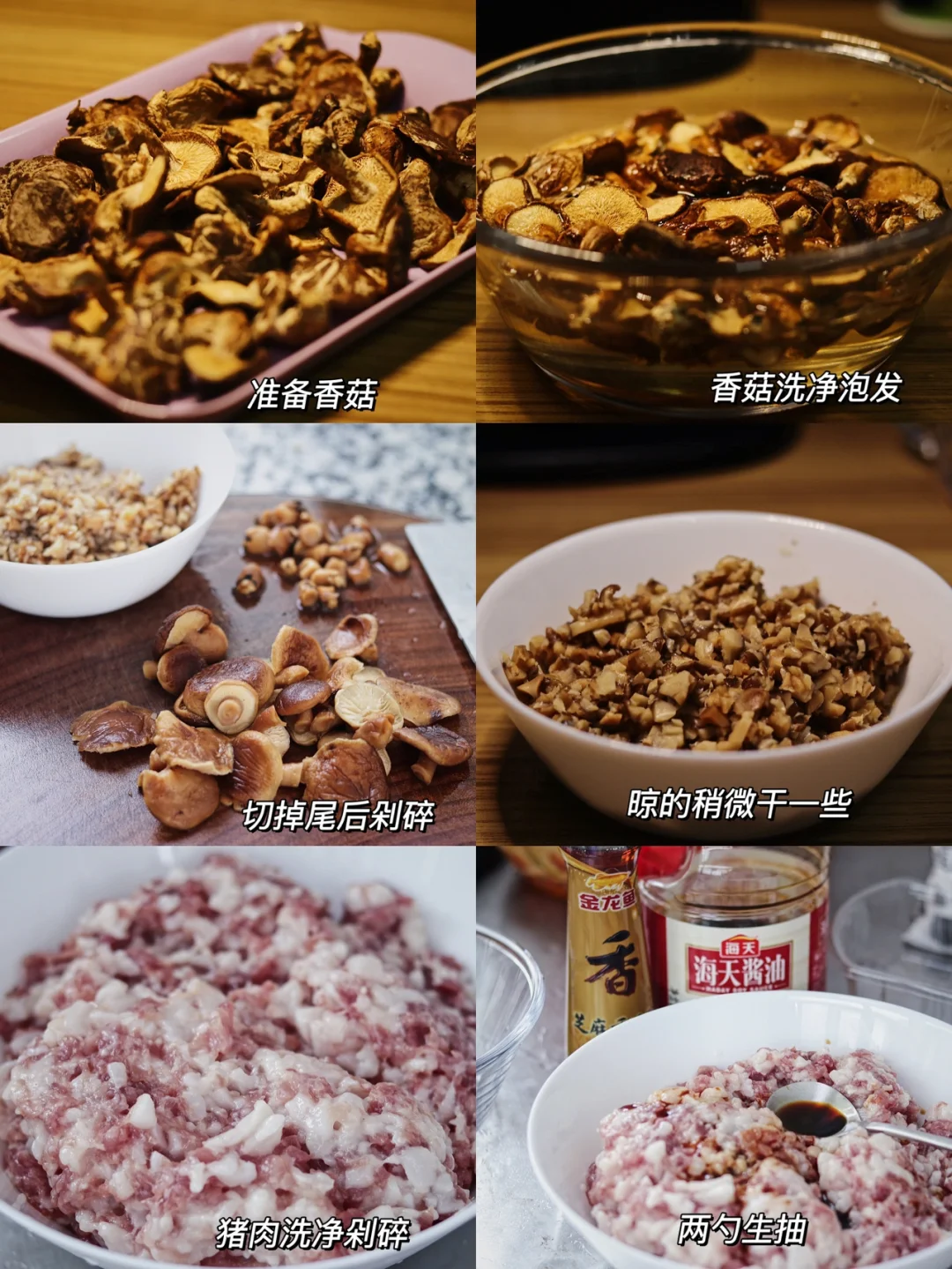 🥟做法:1.提前准备好香菇泡发,洗净后,切掉尾剁碎。