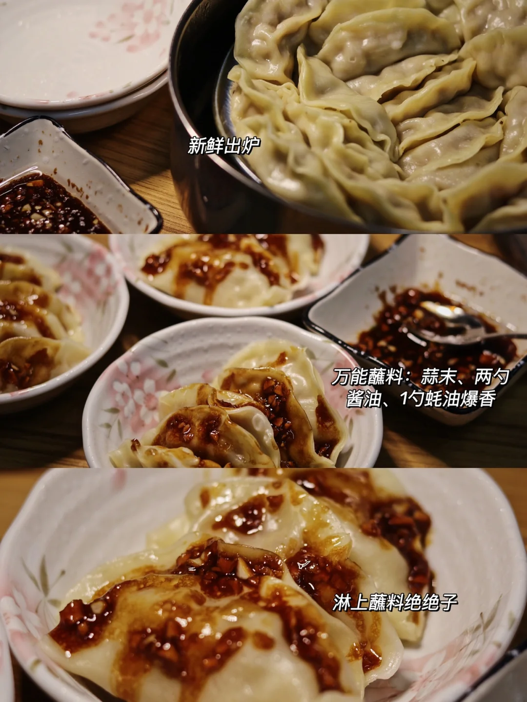 🥟万能蘸料:蒜末,两勺酱油,1勺蚝油爆香。