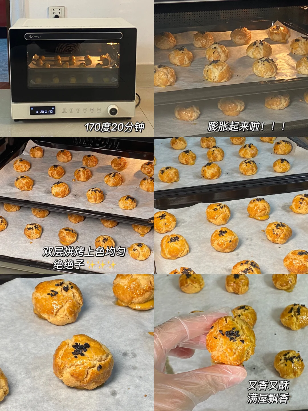 5.烤箱风炉模式170度预热10分钟,烤制20分钟左右(中、下层各放一盘烤制)