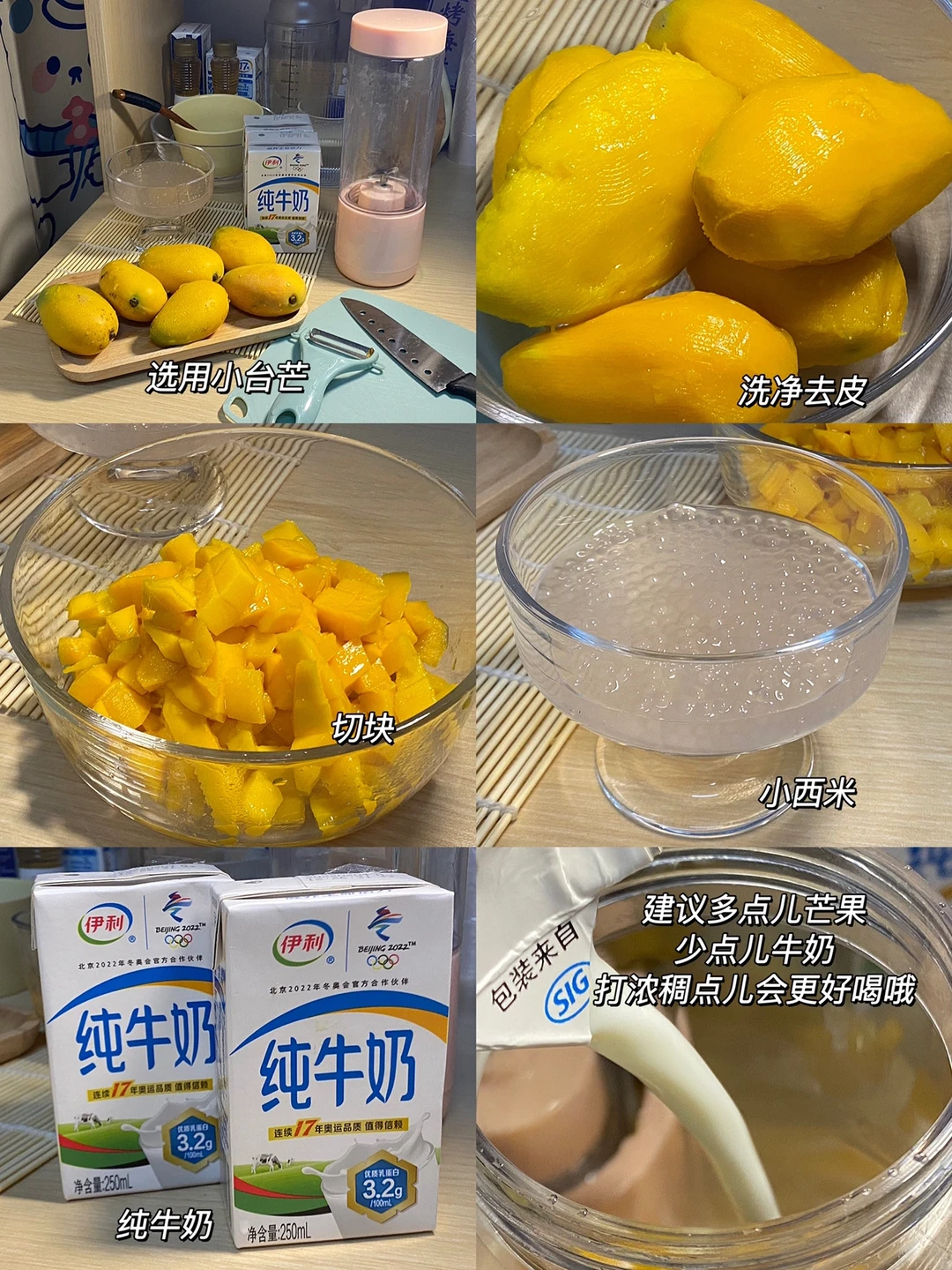 🥭夏日炎炎,牛奶与芒果最配,冰冰凉凉好清爽,做好后可以直接喝或者放冰箱冷藏后再享用,口感上真的是超级无敌绝绝子!!!