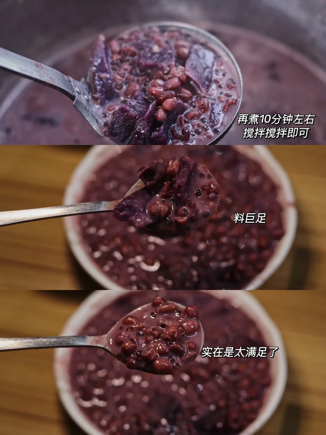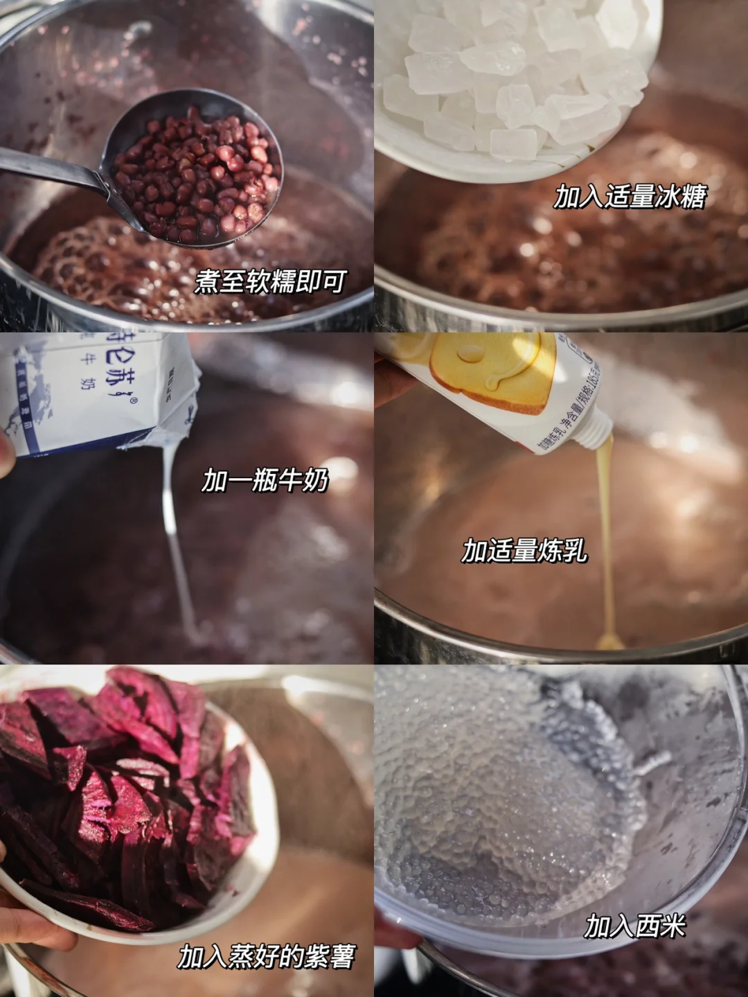 红豆甜汤的升级版,另外加入了紫薯跟西米,奶香十足,软糯香甜,实在是太满足了[赞R]