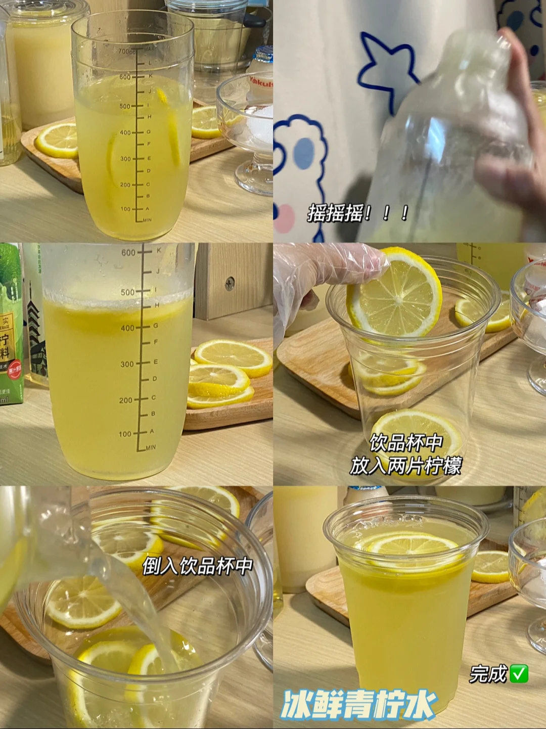 4.饮品杯中放入两片柠檬,倒入饮品杯中,完成✅