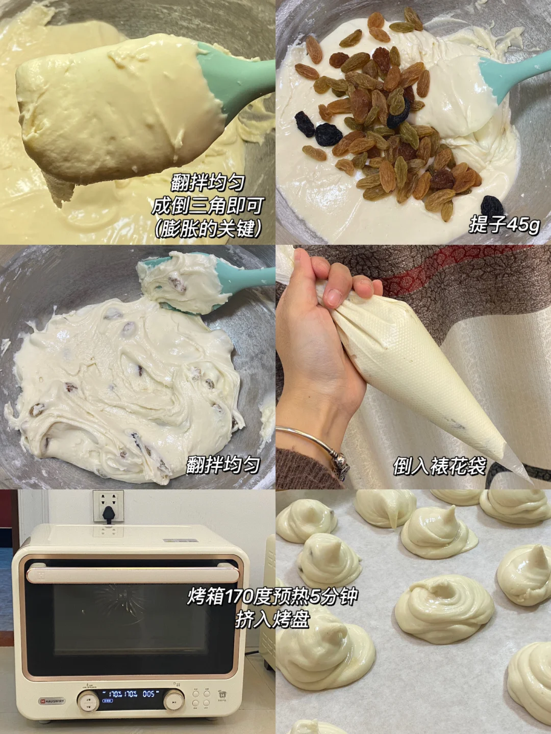 3.倒入裱花袋,烤箱170度预热5分钟。