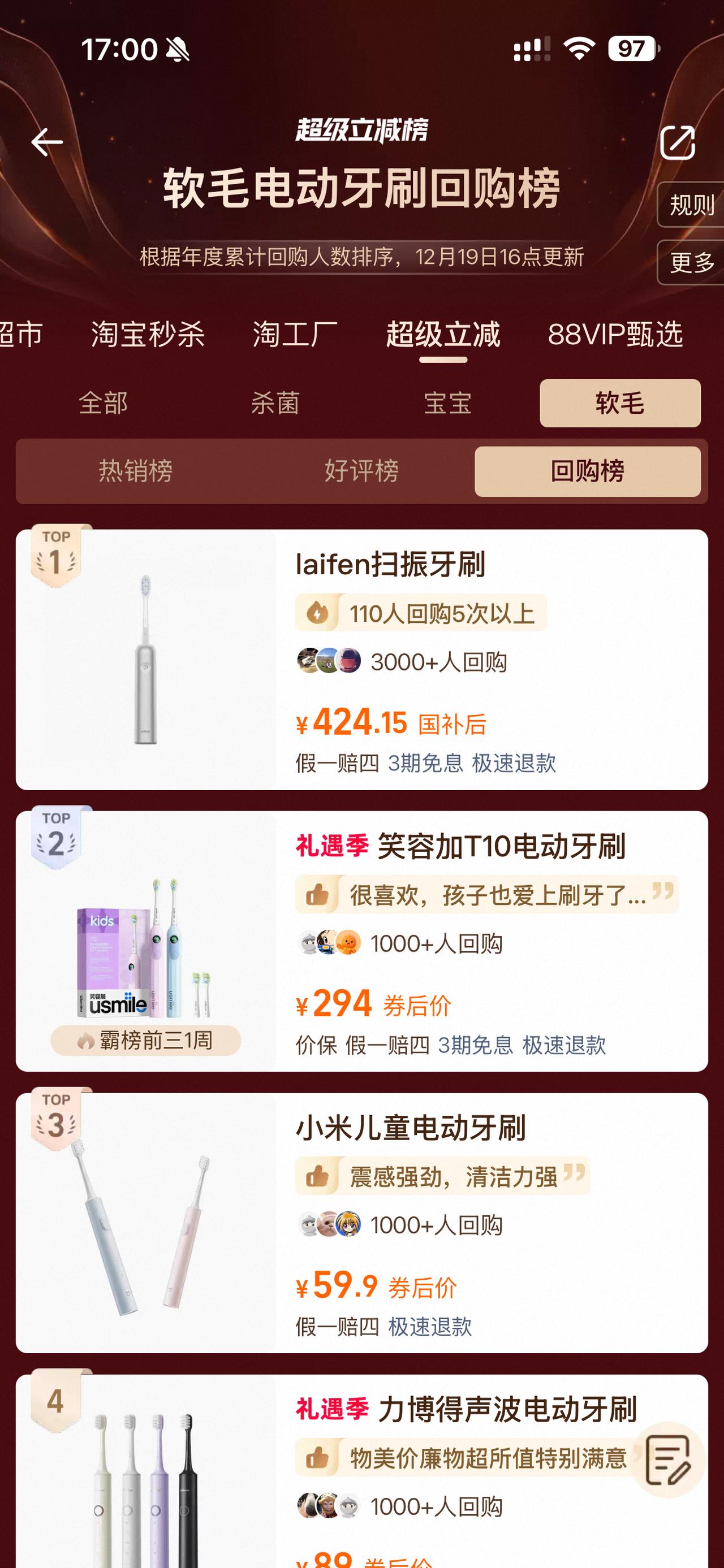 近几年业内普遍有个判断: 个护硬件进入存量竞争时代,电动牙刷更是“格局定了”。渠道天花板、获客成本、体验差异都限制着新品突围。 但徕芬用两代产品打破了这种现象: 第一代牙刷开创了扫振一体模式,获得了行业大规模跟进。而新上市的徕芬扫振电动牙刷 i2,则把这一模式继续升级——从清洁机制、刷头结构、动力控制继续深挖体验差异化。 而市场也是给出了积极的反馈, i2 仅仅上市3天,就拿下天猫平台上——软毛电动牙刷回购榜第一。这种“超早复购行为”,说明品类正在突破传统替代周期,形成新的消费需求结构。 要知道,“回购榜”比“销量榜”更有说服力, 它反映了: • 用户体验反馈周期被压缩 • 复购意愿提前触发 • 行业进入“体验标准重构期”,新品不再被动跟随,而是推动行业新一轮技术路线升级 新品 i2 不再靠补贴打爆款,而是用更好的体验感驱动飞轮转动。很多人认为电动牙刷赛道不会有新增长,但这份榜单说明:不是行业没机会,而是技术路线和体验逻辑需要被改变,一旦突破,就能撬动存量市场。 至少从这份榜单来看,徕芬正在打开电动牙刷赛道的新增长窗口。 顺便来抽个奖吧,截止12月27号中午12:00,从转发本条文案的小伙伴中抽一个20元现金红包哟,快快参与吧。 徕芬扫振电动牙刷i2趁手可靠抽奖详情