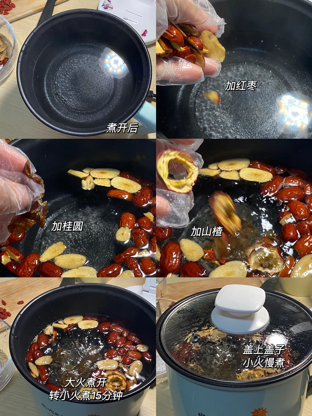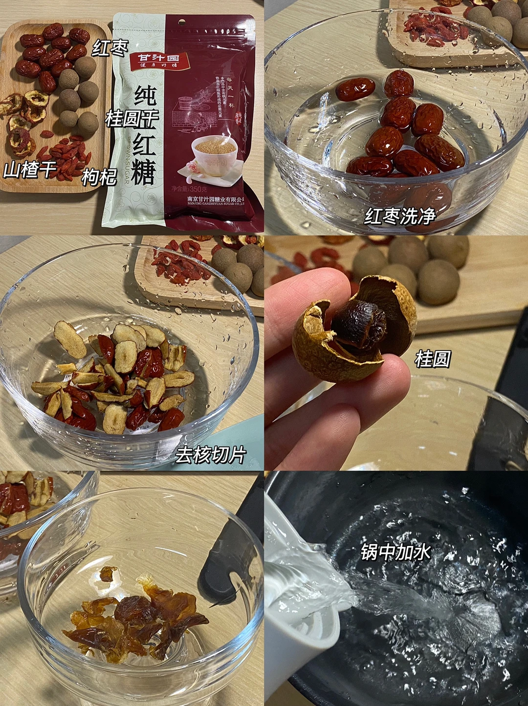 🧚♀️食材:红枣,枸杞,干桂圆,山楂干,老红糖。