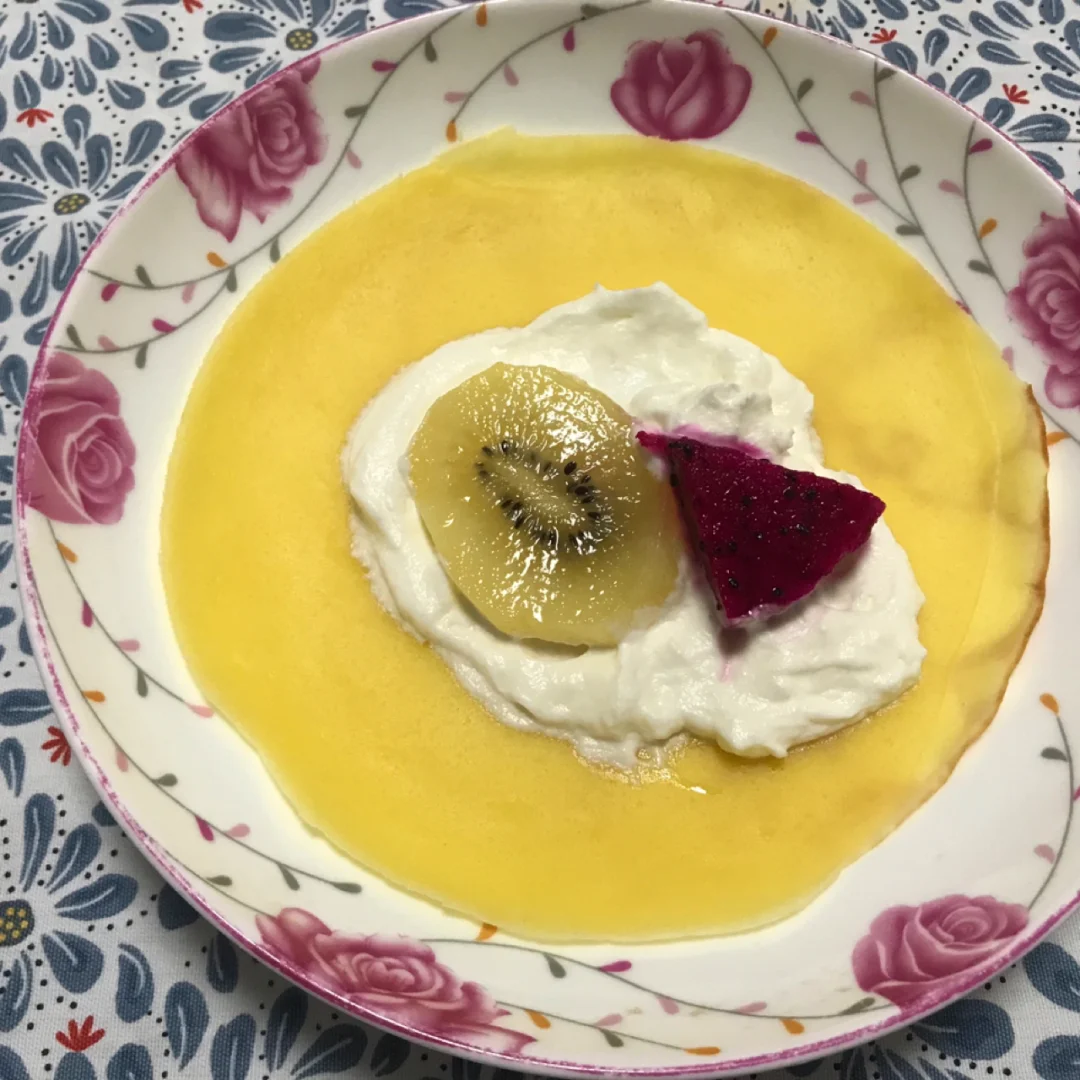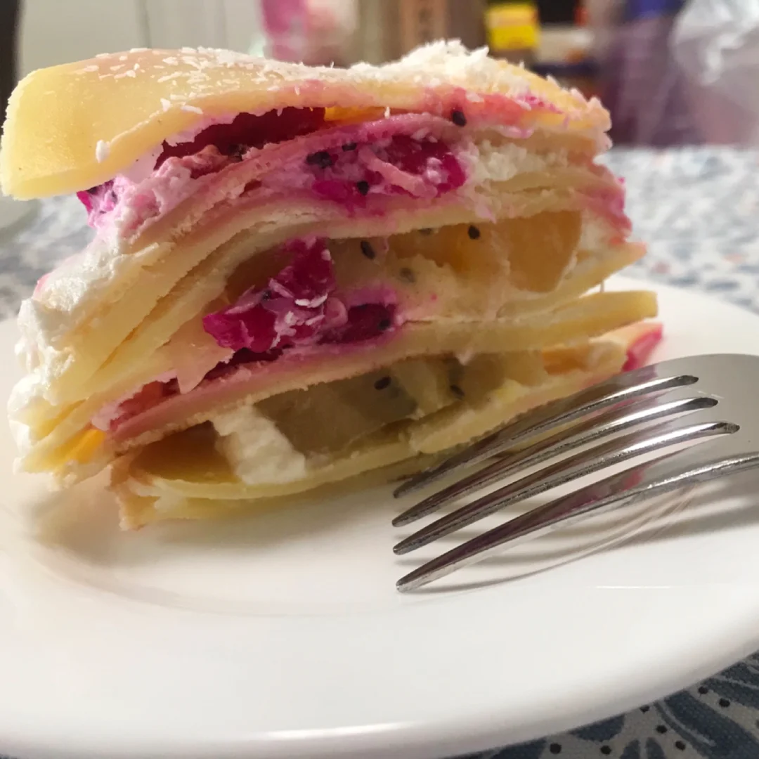 6、切自己喜爱的水果(我这次做的是火龙果➕猕猴桃)打发淡奶油。