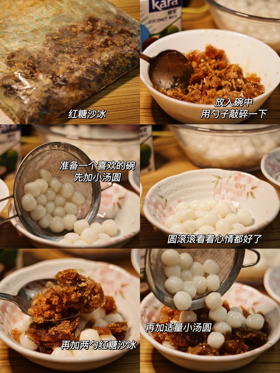 🥥食材:红糖30克,小汤圆,250毫升开水,椰浆。