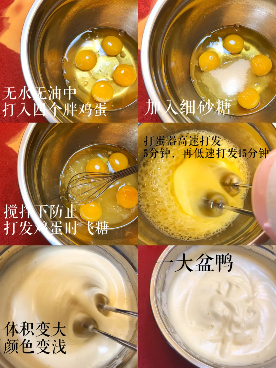 👩🍳四个胖鸡蛋,100克低粉,60克细砂糖/绵白糖