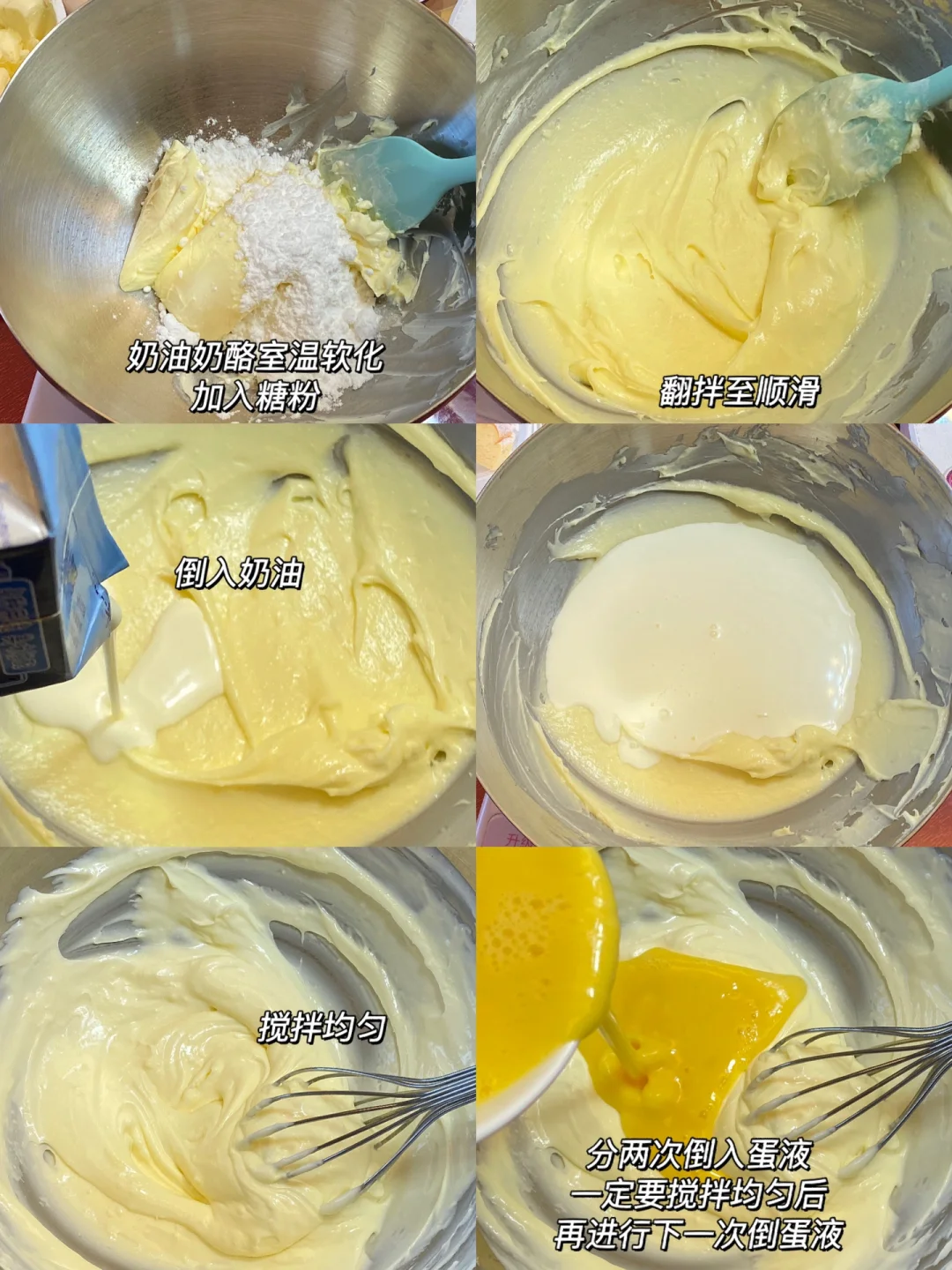 🍰做法:1.奶油奶酪室温软化,加入糖粉,搅拌至顺滑。