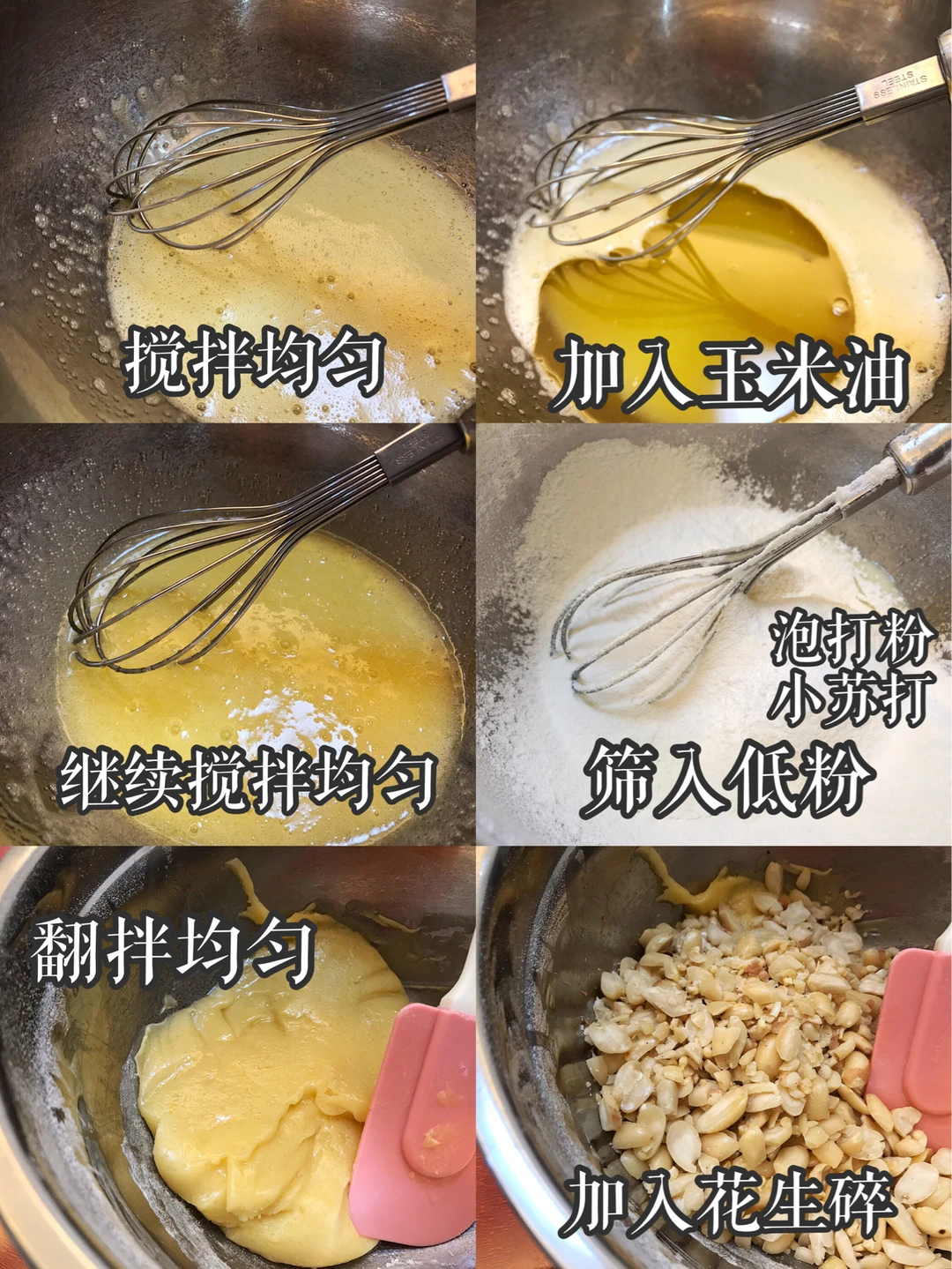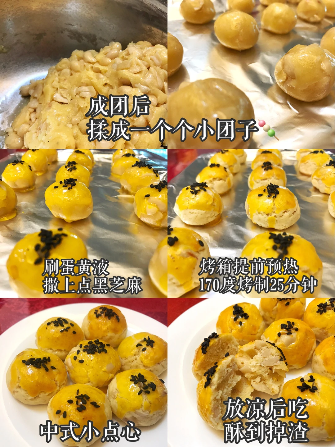 🥜食材:熟花生碎50克,低粉200克,玉米油80克,白砂糖50克,鸡蛋一个,泡打粉2克,小苏打1克,蛋黄液适量(用于刷表面)黑芝麻适量