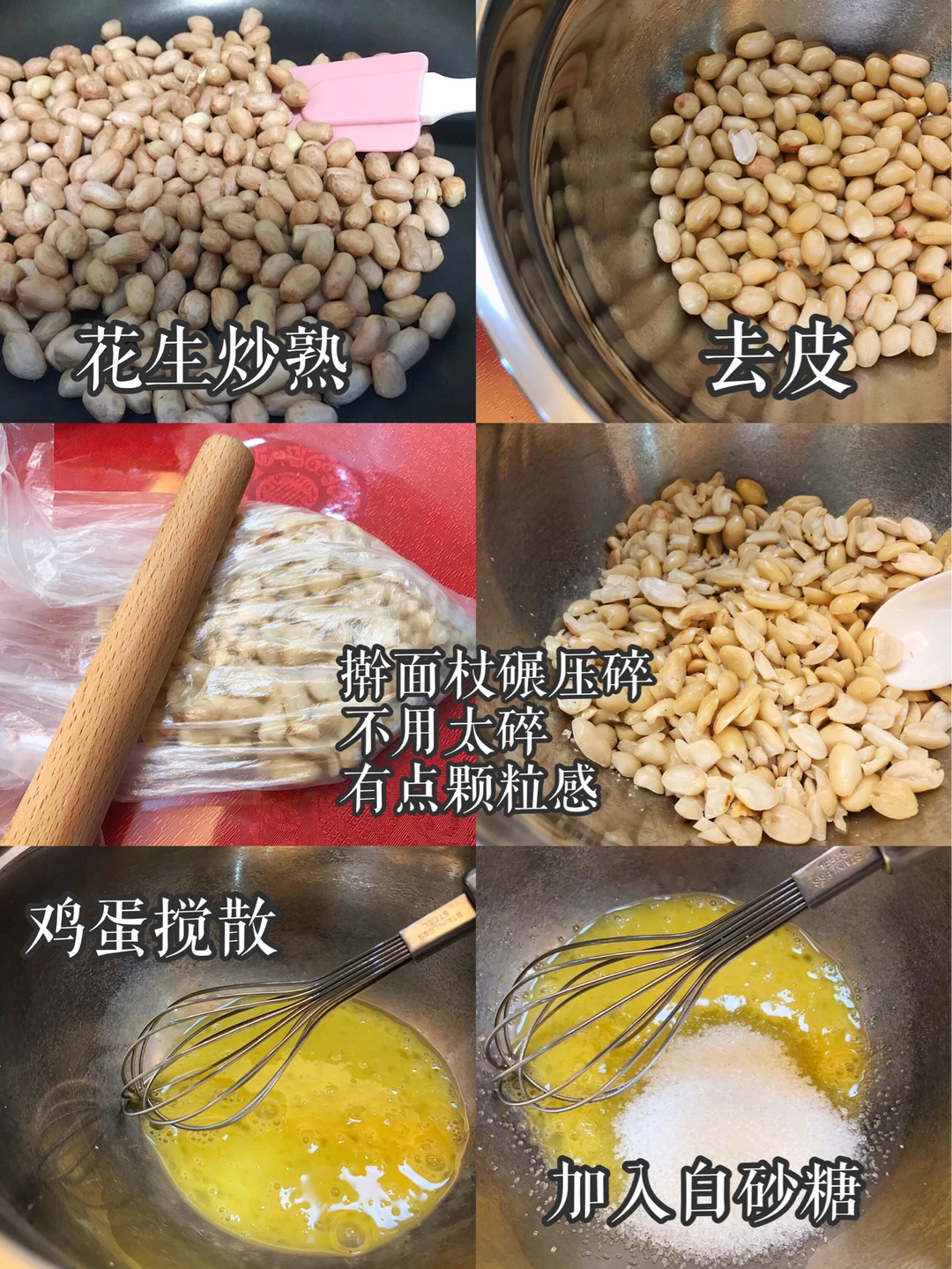 🥜做法:1.先来准备花生碎,花生炒熟去皮,用擀面杖碾压碎,不用太碎哦,有点颗粒状即可。