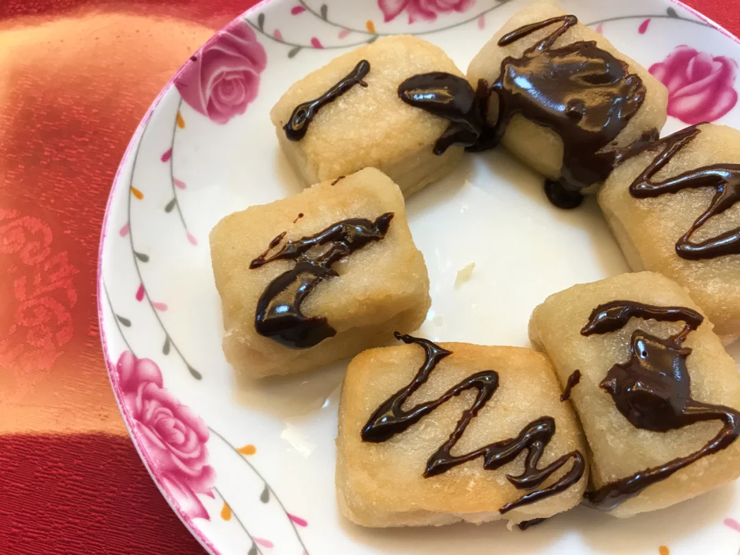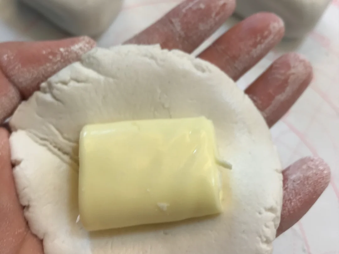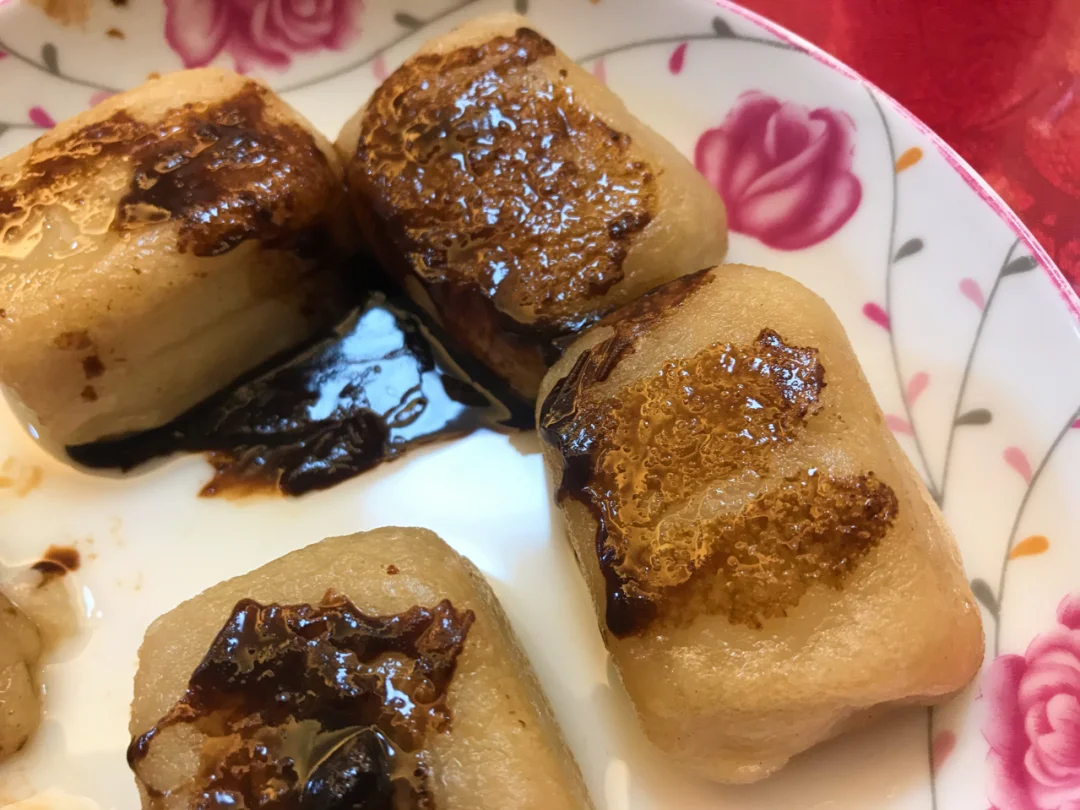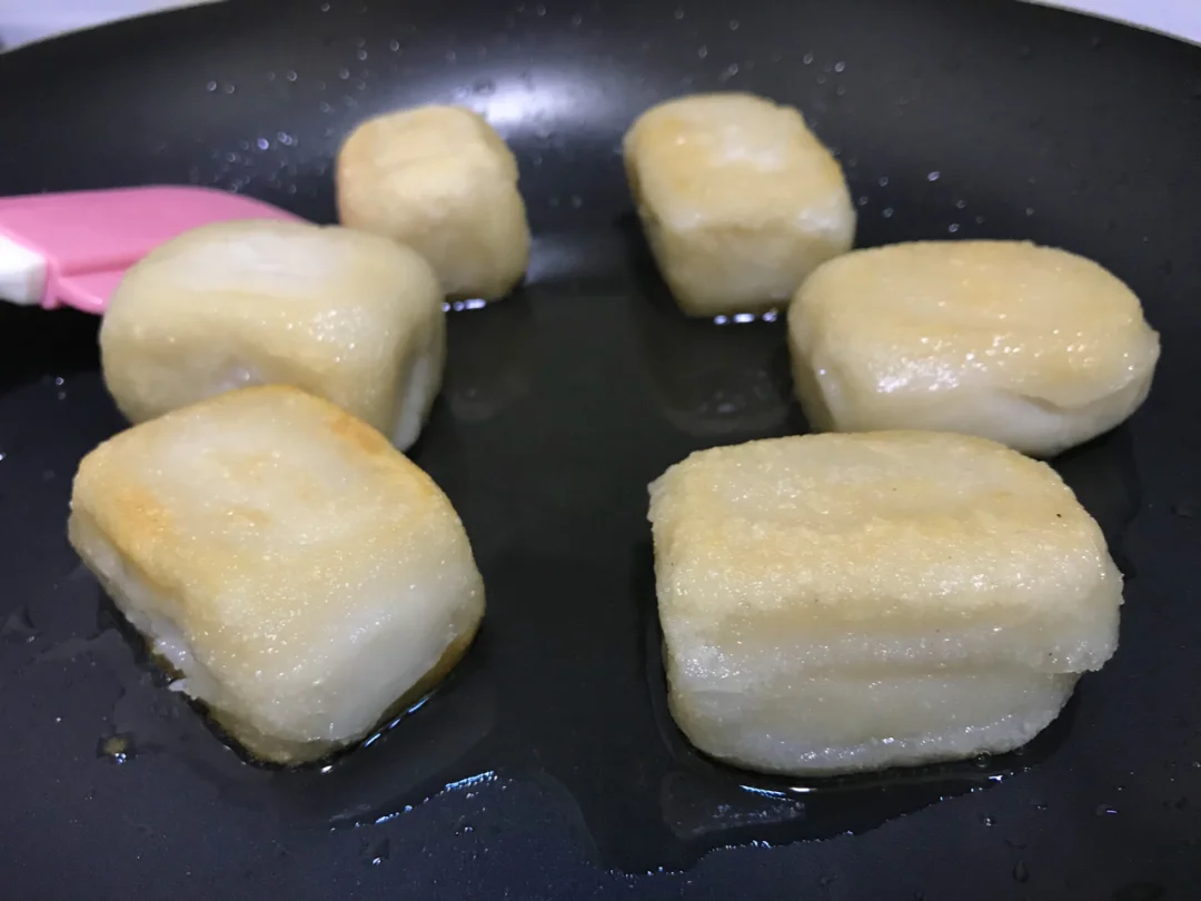 妹妹巨爱!!! 食材:糯米粉、温水、红糖(少量水) 做法:1.先提前熬制糖浆,不粘锅中加入适量的红糖和少量的水熬至浓稠即可。 2.将100克糯米粉80克水混合揉成面团。 3.分成等分的小剂子,取一个搓成球后压成圆形,放入芝士包起来整成长方体。 4.平底锅书一层油,小火慢煎至两面金黄,记得四个边都要煎一下。 熟透的芝士年糕会鼓起来,就可以出锅啦! 真的是软糯香甜💕