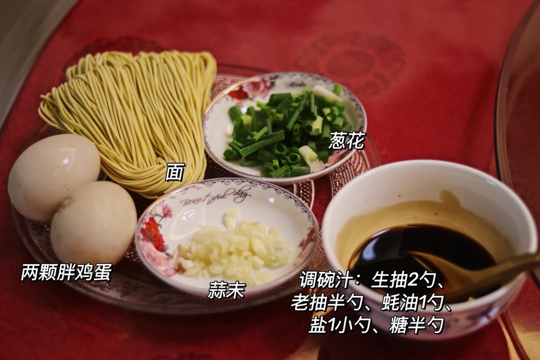 🍜食材:面两捆、葱花、蒜末、鸡蛋两颗。 🍜调碗汁:生抽2勺、老抽半勺、蚝油1勺、盐1小勺、糖半勺。 🍜做法:1.葱花、蒜末提前切好,锅加热倒油煎荷包蛋,两面都煎一下,煎至金黄盛出备用。 2.蒜末炒香,倒入调碗汁,再倒入两碗水、面条、荷包蛋,盖上盖子,中小火焖煮,焖至汤汁浓稠即可出锅。 3.出锅后撒上葱花,酱汁浓郁到舔盘🌟