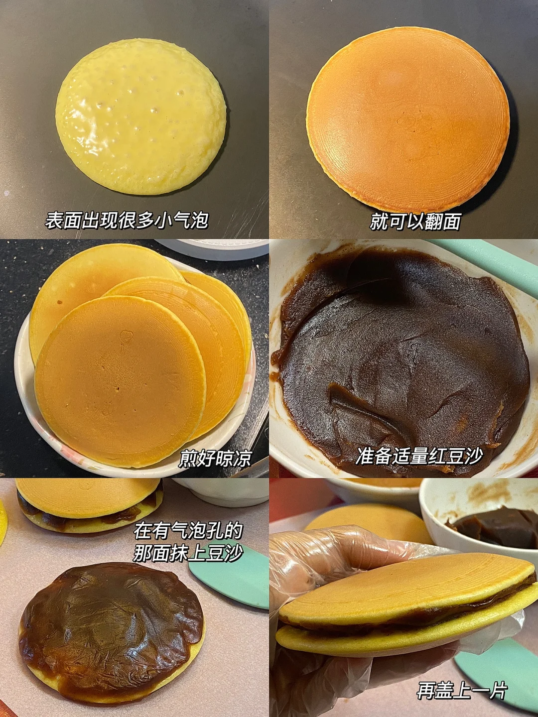 🥞食材:鸡蛋两颗,牛奶40g,泡打粉3g,低筋面粉100g,玉米油10g,细砂糖20g,红豆沙适量。