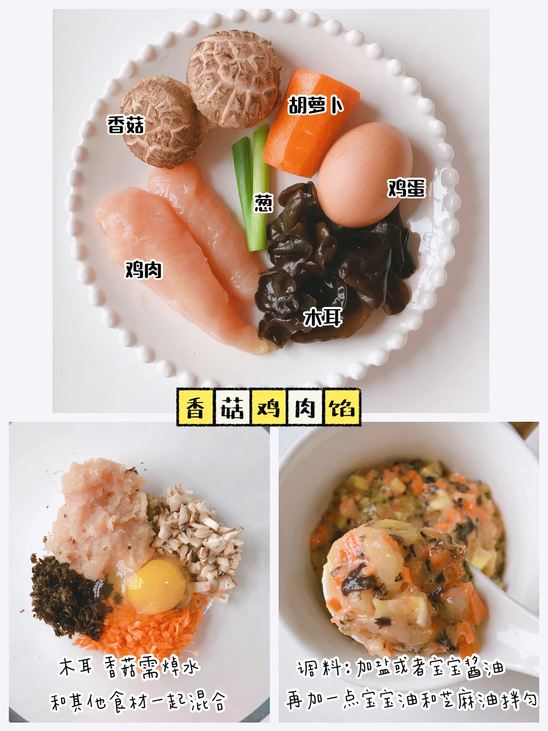 1️⃣香菇鸡肉馅