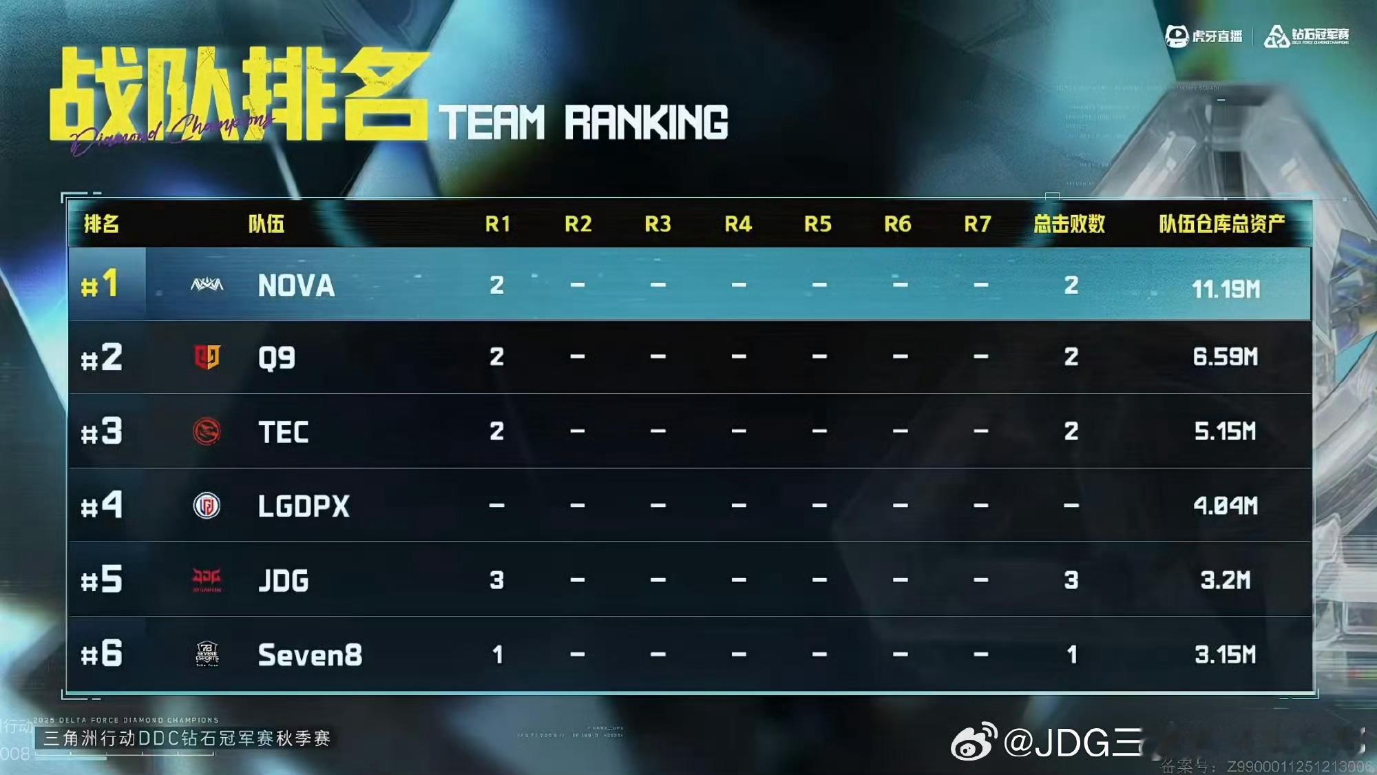 JDG决赛首局失利三角洲DDC钻石冠军赛秋季赛| 决赛Round1:零号大坝∎ 本局排名:6∎ 本局击败:3∎ 物资价值:168.9k∎ 战队排名:5