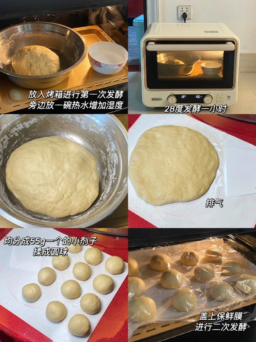 4.拿出排气,分成55g一个的剂子,揉圆。