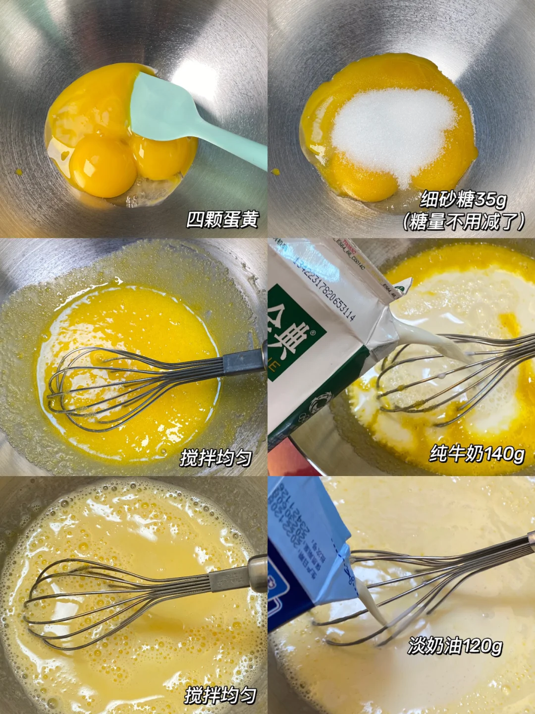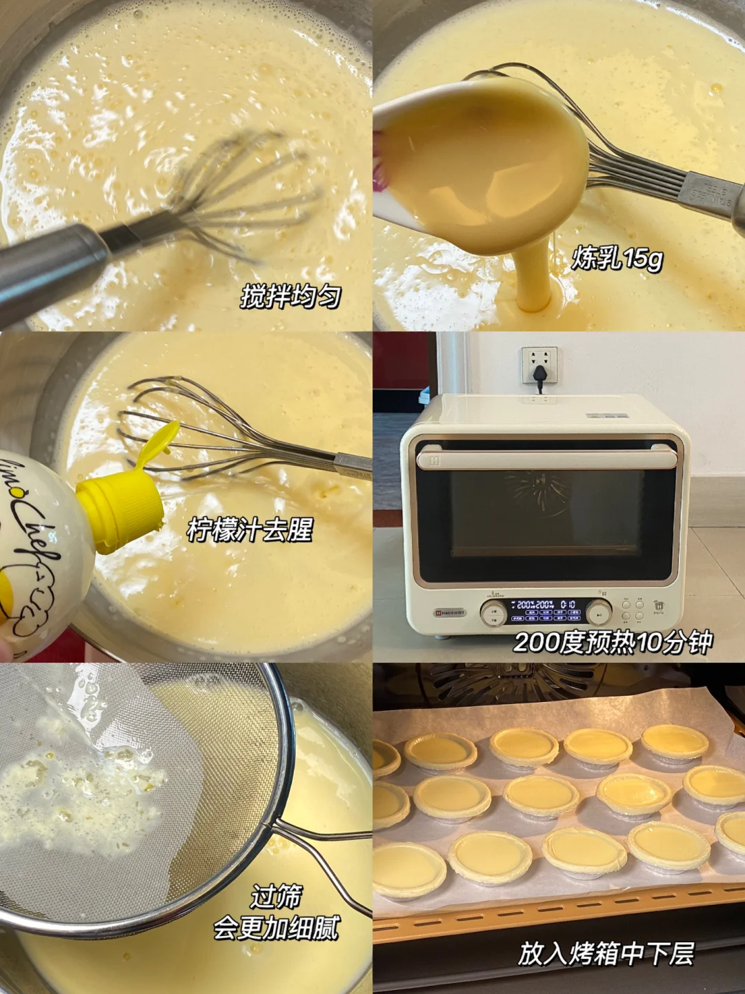 👩🏻🍳食材:纯牛奶140g,细砂糖35g(糖量不用减了)蛋黄4个,炼乳15g(增加奶香味)淡奶油120g(雀巢)小蛋挞皮24个(俏侬牛油小挞皮)柠檬汁。