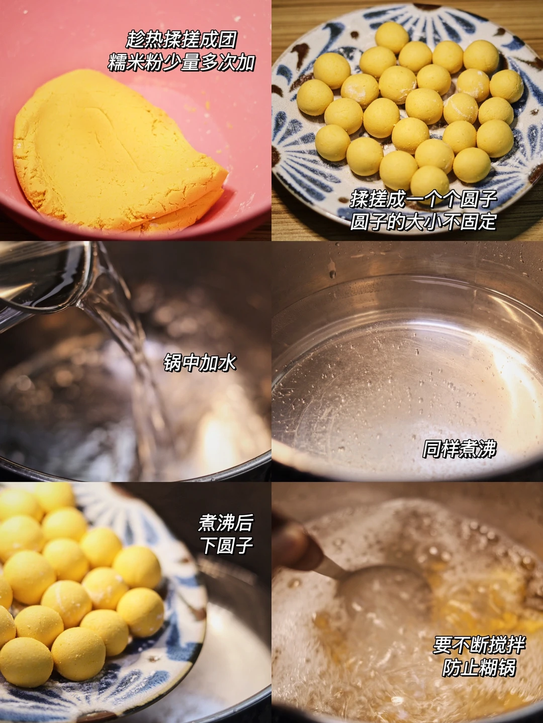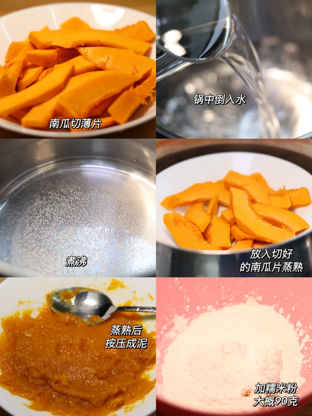 🍡食材:南瓜半个,红豆70克,糯米粉90克,冰糖适量。