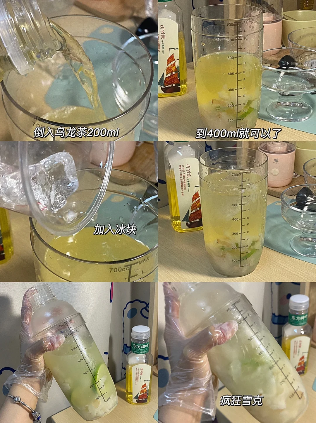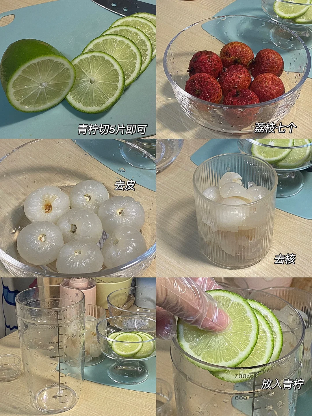 🍋食材:青柠(香水柠檬),荔枝七个,乌龙茶(但更建议用茉莉花茶),冰块。 🍋做法:1.青柠切5片即可备用,荔枝去皮去核。 2.放入青柠,用冰锤压出汁,放入荔枝,压出汁. 3.倒入200ml乌龙茶,加入冰块。 4.疯狂雪克雪克!!!来回摇个七八次左右。 5.倒入杯中,盖上盖子,完成✅ 🍋清爽解腻,刮油神器,太好喝了!!![赞R][赞R][赞R]