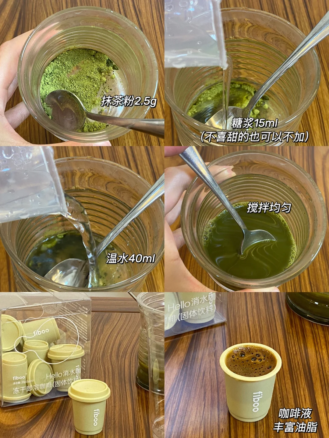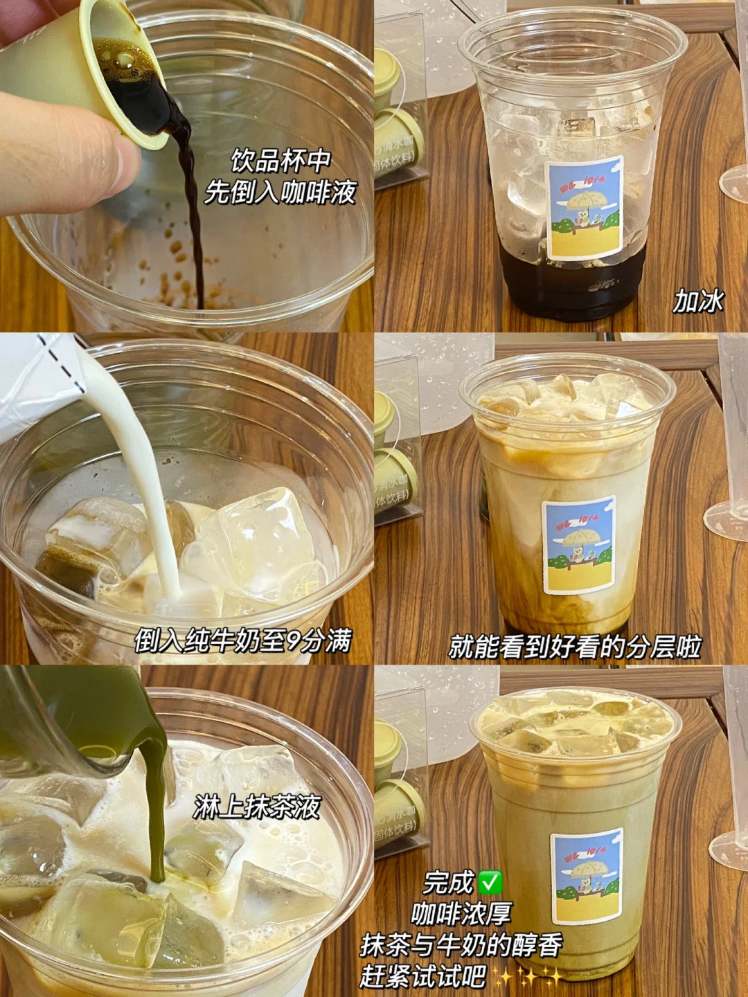 🌼食材:抹茶粉,咖啡,纯牛奶,糖浆,冰块。 🌼做法:1.抹茶粉2.5g,糖浆15ml(也可以换成炼乳)温开水40ml,搅拌均匀备用。 2.饮品杯中倒入咖啡液,加满冰。 3.倒入纯牛奶至9分满,淋上抹茶液。 🌼这个分层太美啦!!! 🌼咖啡浓厚,抹茶与牛奶的醇香,赶紧试试吧[赞R][赞R][赞R]