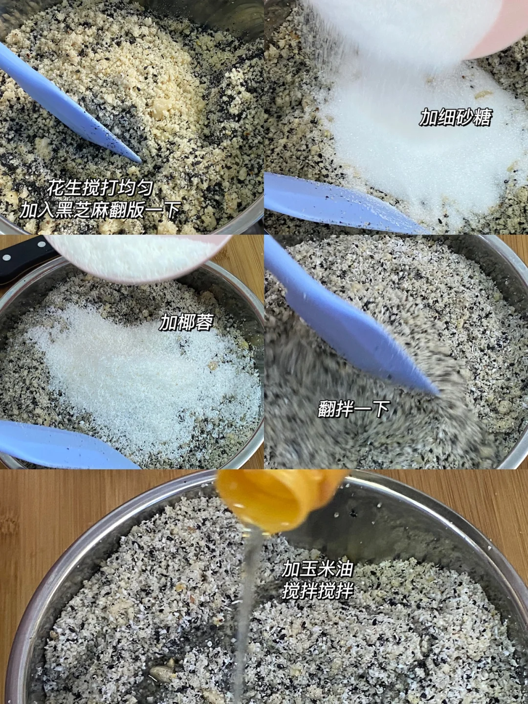 食材🥜花生芝麻馅:黑芝麻,花生,砂糖,椰蓉,玉米油。