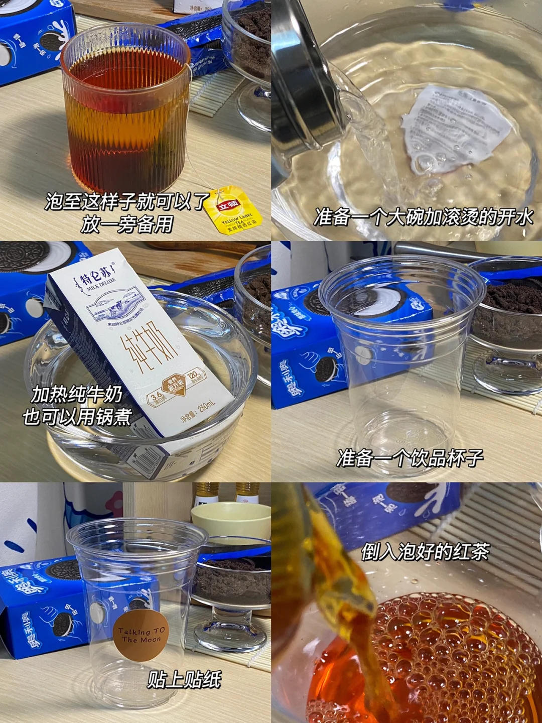 🍪食材:立顿红茶包,奥利奥,纯牛奶,芝士奶盖。