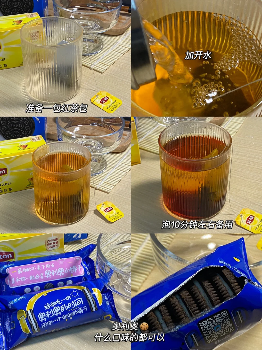 🍪做法:1.准备一包立顿红茶包,加开水泡10分钟左右备用。