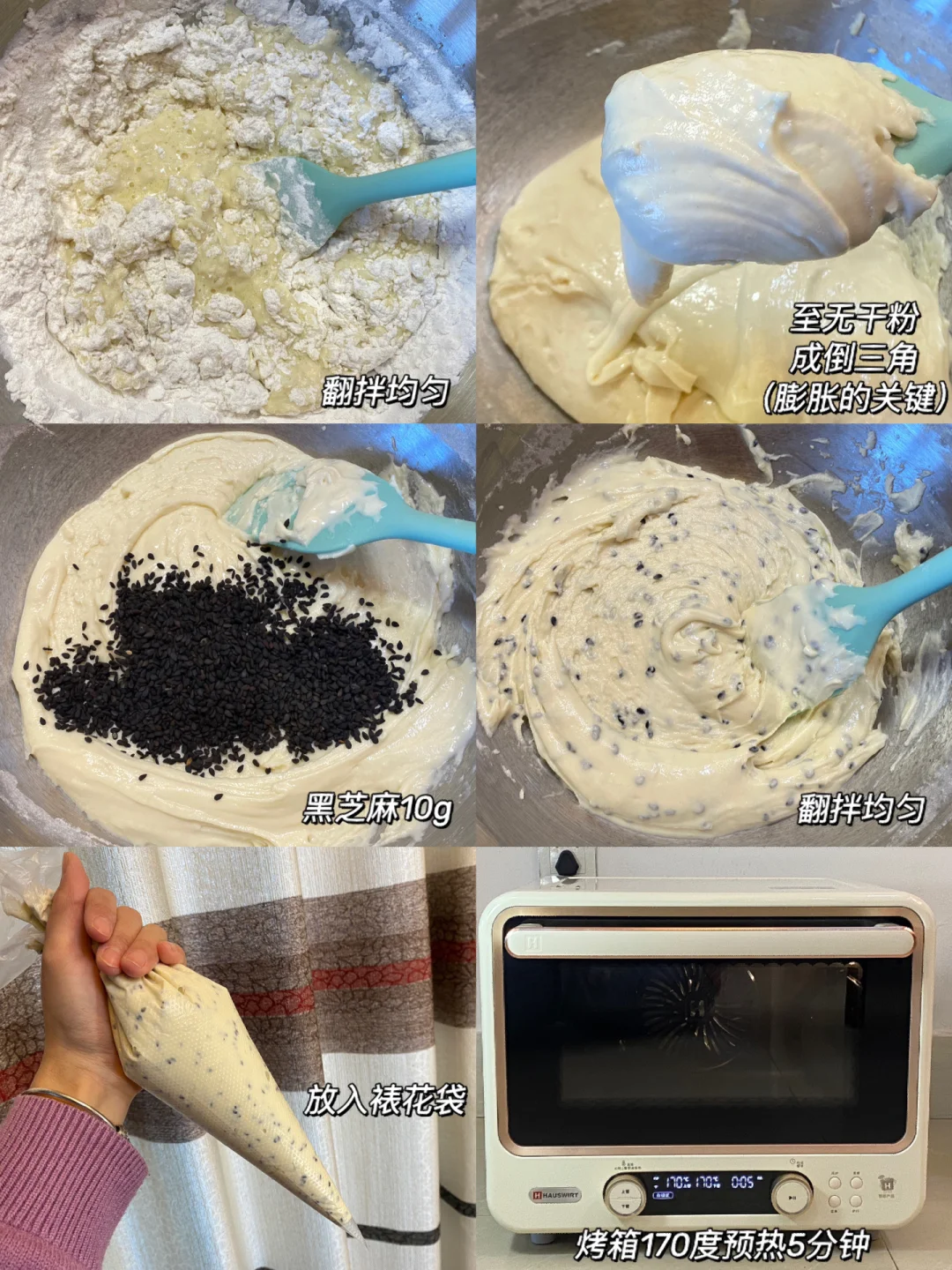 3.放入裱花袋,烤箱提前170度预热5分钟。