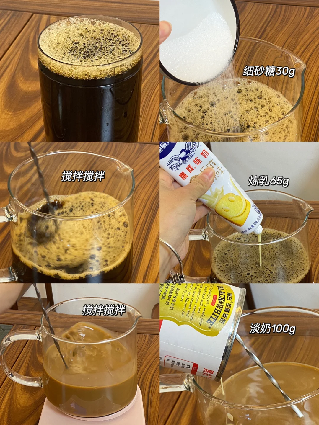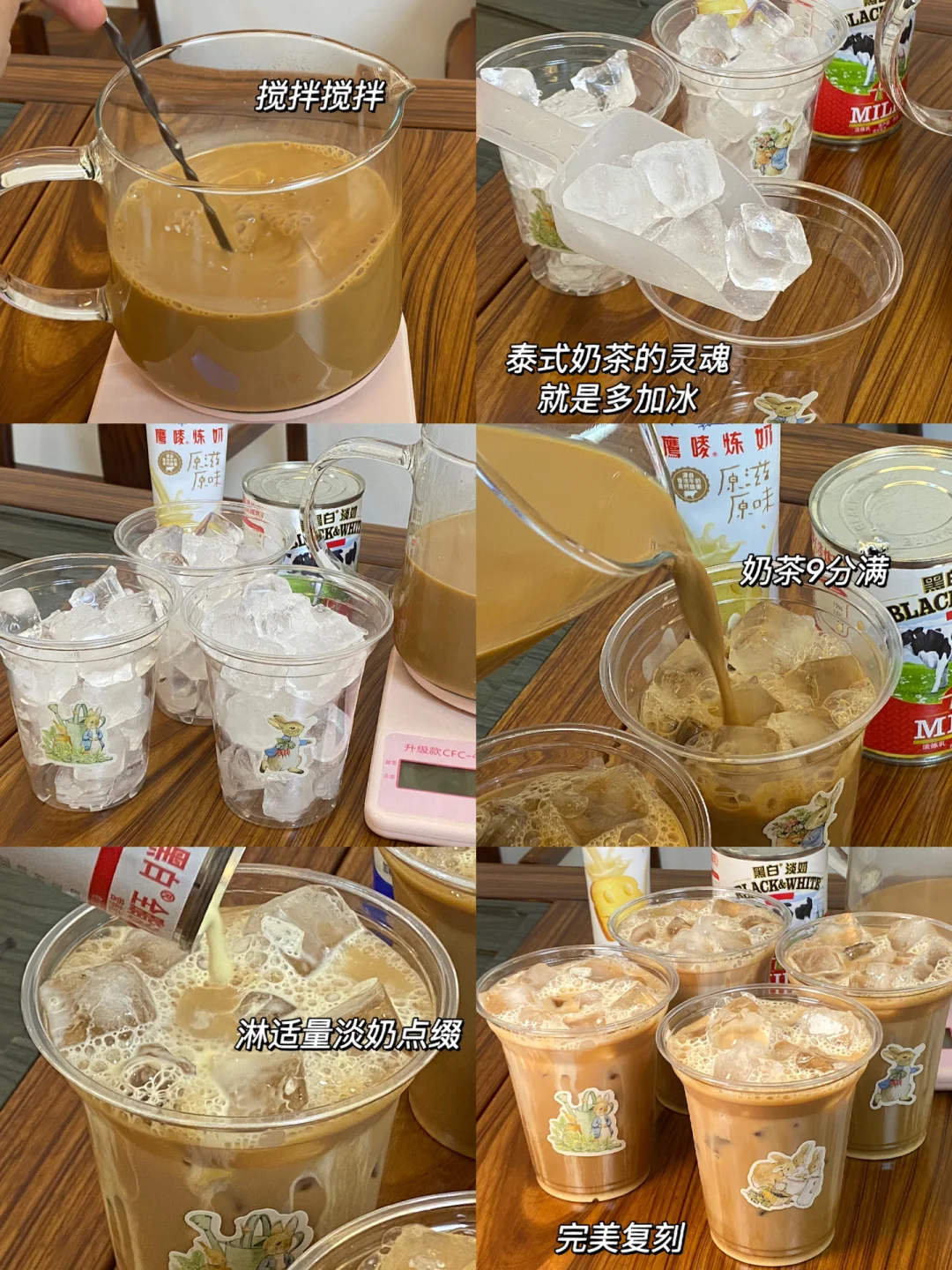 👩🏻🍳食材:手标红茶40g,水800ml,细砂糖30g,炼乳65g,淡奶100g,冰块。 👩🏻🍳做法:1.锅中倒入水,加入手标红茶粉,煮沸,关火焖5分钟。 2.过滤拉茶,来回拉5至6次,可以多拉几遍(这样可以减少茶的苦涩) 3.加入细砂糖30g,搅拌搅拌。 4.加入炼奶65g,搅拌搅拌。 5.倒入淡奶100g,搅拌搅拌。 6.加多多冰(泰奶的灵魂就是多加冰)倒入奶茶9分满,淋适量淡奶点缀,完美复刻[赞R] 👩🏻🍳真的超超超超好喝!!!赶紧试试吧!