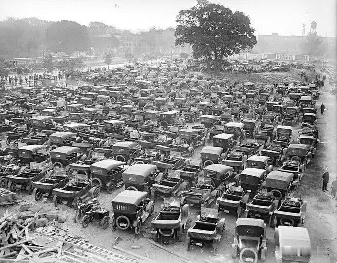 这张照片展示了1916年世界大赛(World Series)第一场比赛期间波士顿勇士队球场(Braves Field)外的拥挤停车场。照片中的汽车大部分是福特Model T,展现了汽车文化在美国早期普及的情景。 详细信息 事件:1916年世界大赛第一场比赛。 地点:波士顿的勇士队球场外。 球队:对阵双方是波士顿红袜队(Boston Red Sox)和布鲁克林罗宾斯队(Brooklyn Robins,现洛杉矶道奇队前身),红袜队最终以4-1赢得了系列赛。 汽车:停车场内停满了外观相似的早期汽车,主要为福特Model T。 摄影师:这张历史照片由莱斯利·琼斯(Leslie Jones)拍摄。