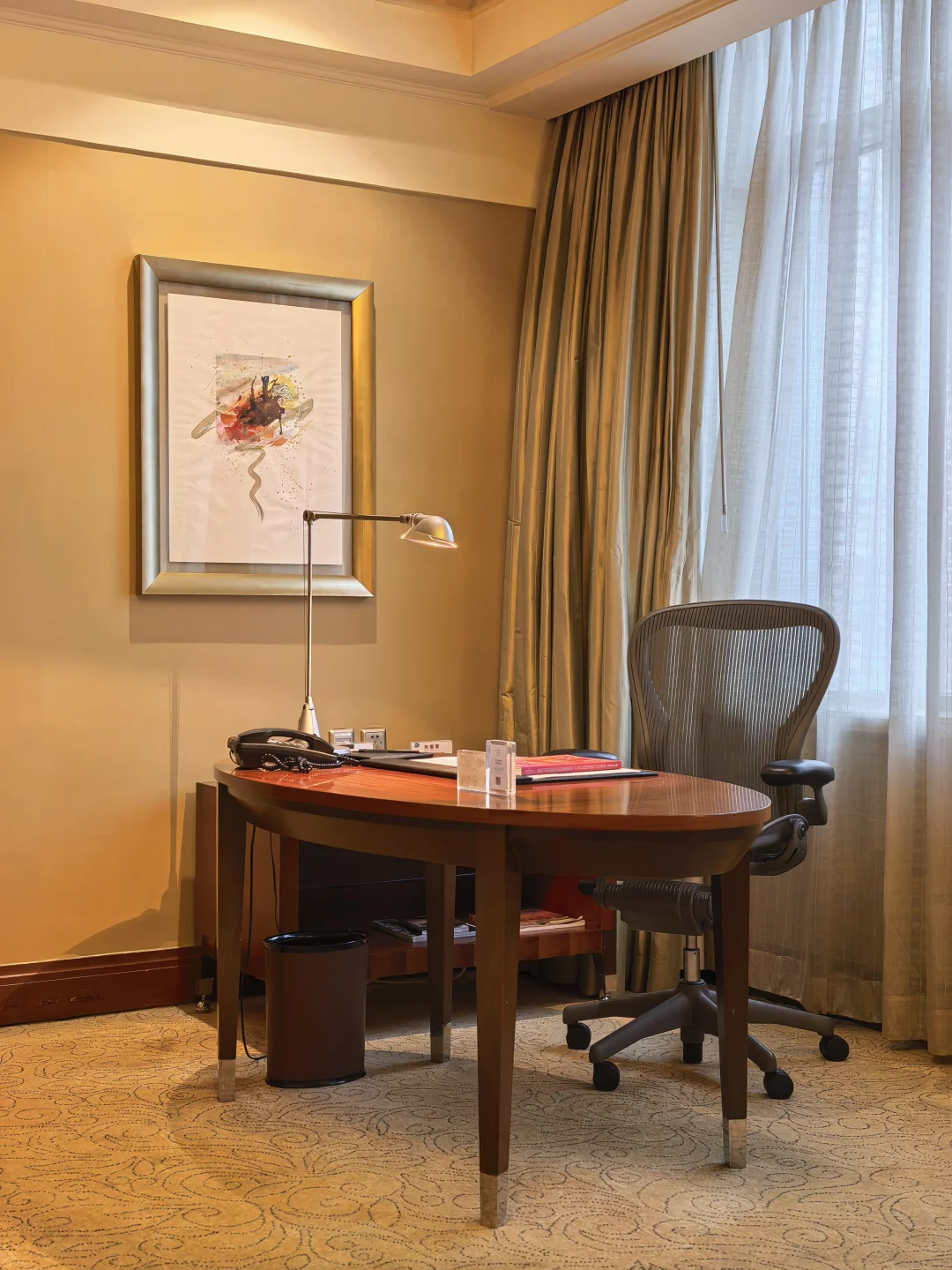 走廊的地毯、房间里略显疲态的窗帘,都在提醒你它确实老了。也正因为如此,会让人期待它翻新之后、以新的万豪身份重新出现的样子。